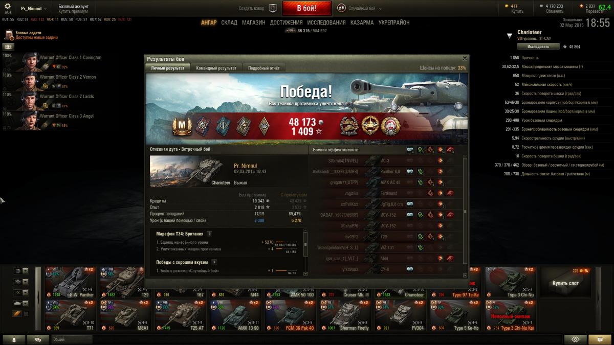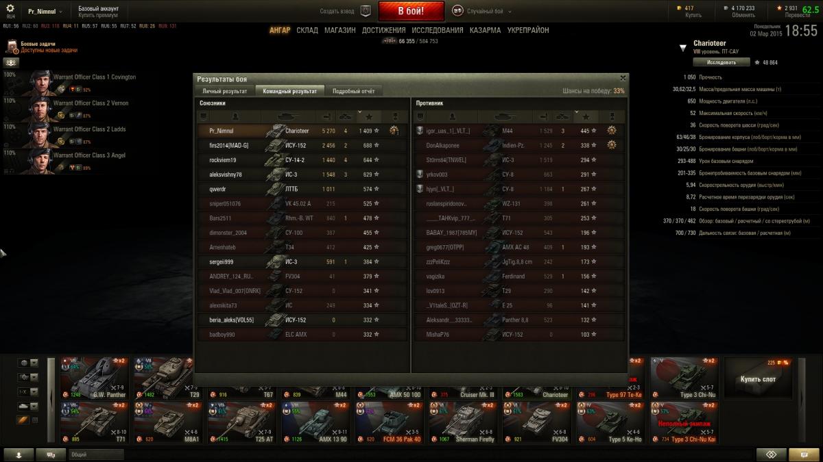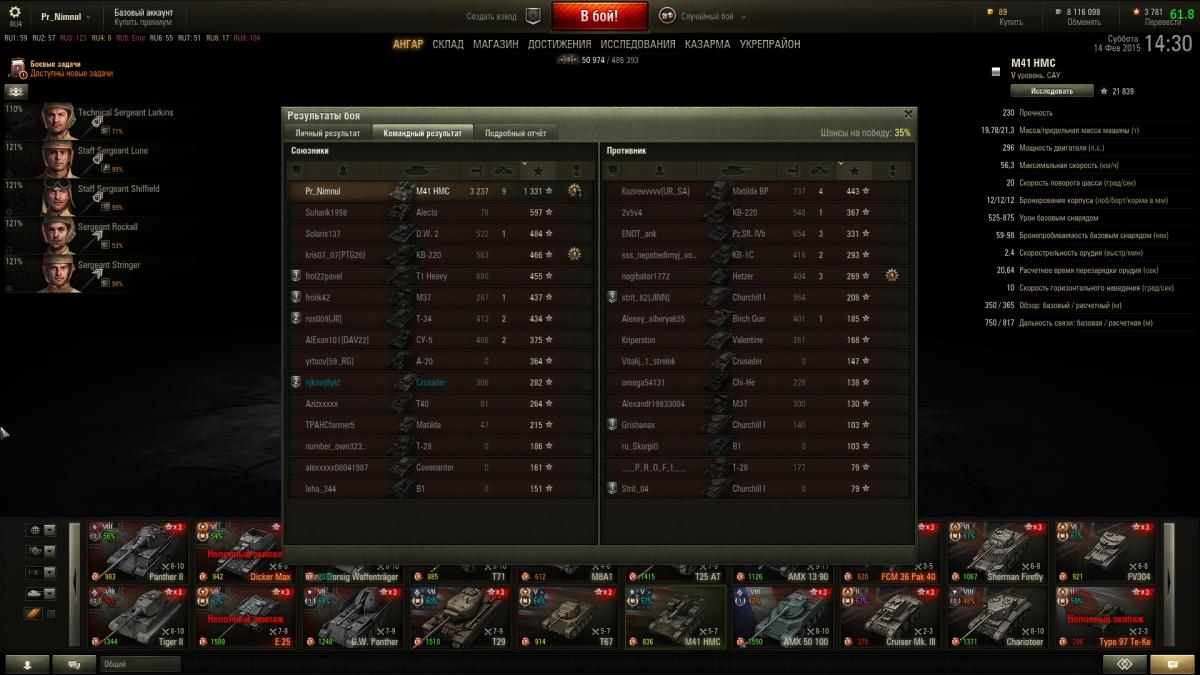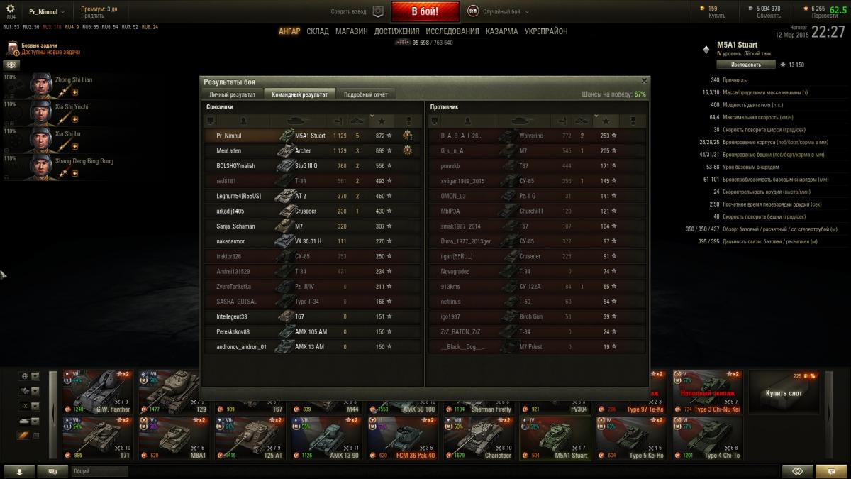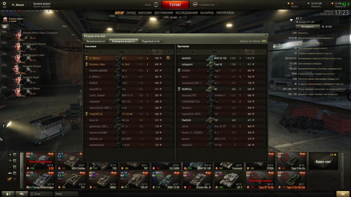 За несколько последних боев перед открытием тумбочки наконец то удалось набрести на оленье стадо и взять парочку мастеров. Из ангара однозначно долой - машинка хоть и сильная, но крайне узкоспециализированная и в большинстве боев просто унылая.