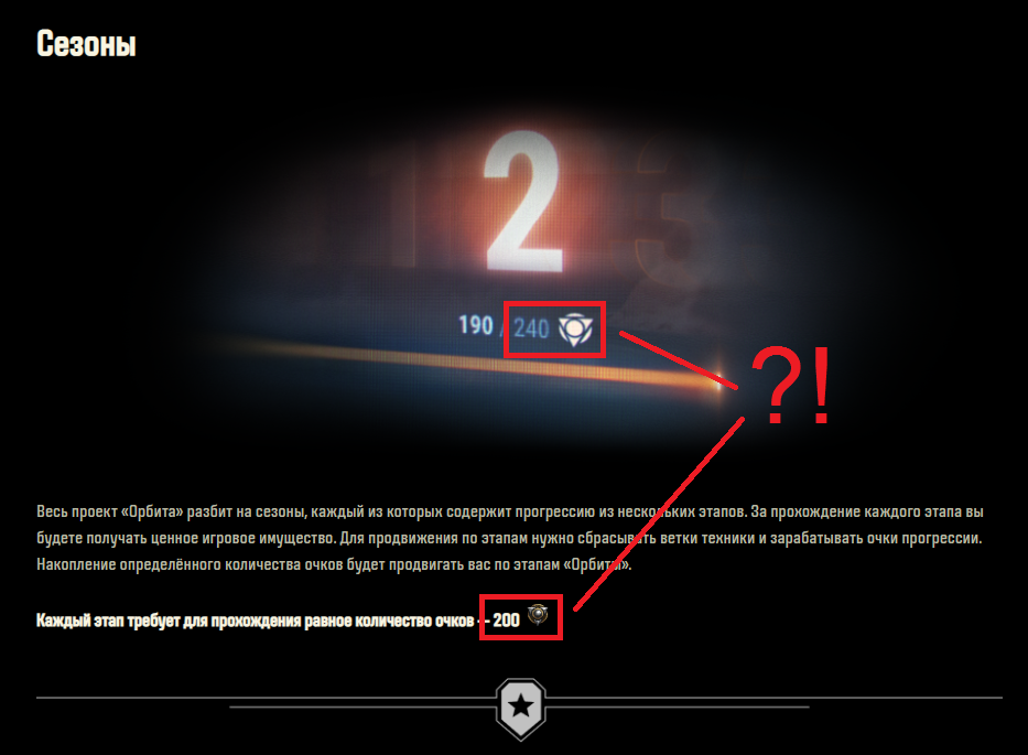 7. Почему в руководстве/регламенте "Проект Орбита" на изображении в разделе "Сезоны" очков на этап указано "240", а не "200"?