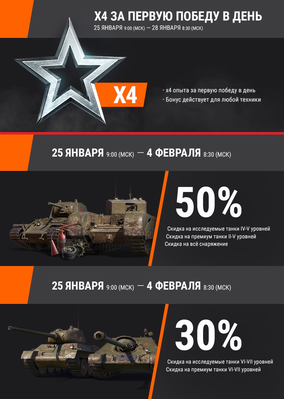 http://cdn-frm-eu.wargaming.net/4.5/style_images/wg/snapback.pngArtGrenade (25 Янв 2019 - 07:31) писал: А, я понял. Суть поста в том, что вчера эти самые скидки были объявлены, что видно по вчерашнему скрину, а сегодня их по тихому убрали, потому что поняли что немного облажались совмещая трейд-ин и акции. Ключевое слово "по тихому"