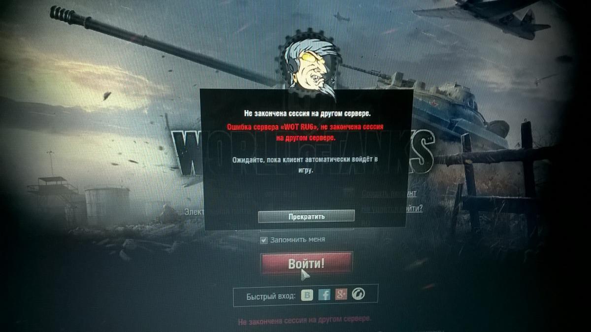 Сидел играл, решил поменять сервак вышел , а зайти немогу пишет " перегружен или ошибка серва" пробывал и автоматически и посервачно заходить, толку ноль. Решил попробывать другой ак зашел сразуже, без проблем. Переустановил клиен всеровно не пускает и даже венду переустоновил все ровно непускает. ЧЕ ДЕЛАТЬ?! Время идет прем заканчивается.......А и еше пишит незакончиная сесия на другом серере.http://cdn-frm-eu.wargaming.net/wot/ru/uploads/monthly_11_2015/post-15620126-0-74557500-1448401863_thumb.jpg