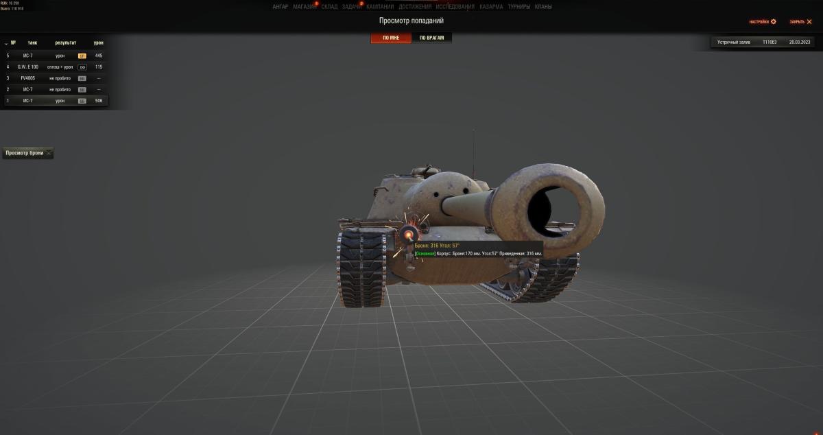 1. Добрый день! Уважаемые разработчики, объясните, а что собственно происходит? Если с ИС-7 вы еще можете попытаться прикрутить к пробитию на ББ +/-25% (и то не влезет), то с Мантикорой придется потрудиться. На скринах с T110Е3 крайние показания брони какие только удалось найти.