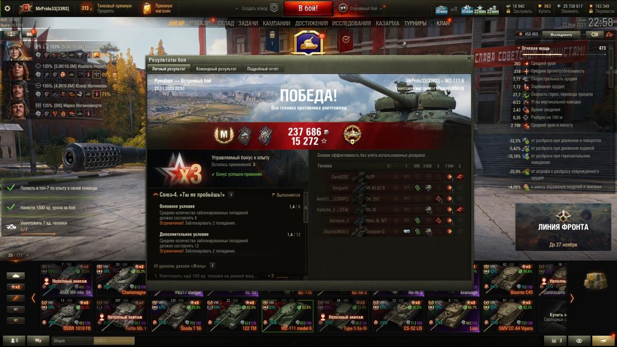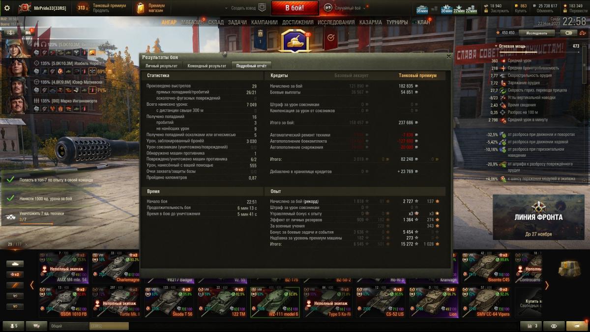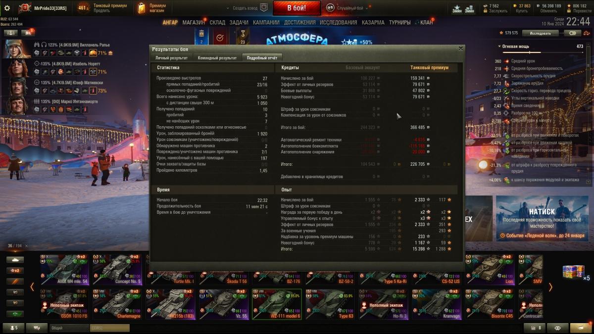 Сегодня красивый бой на этом ТТ получился на мастера с 1724 чистого опыта! Вытащил практически в одиночку сливной бой в однуровневом бою. А так за 110 боёв со средним уроном 2771 + 516 ассиста (3287 сумарки на 8-ом уровне) дали всего 2 отметки. Вот по эти показателям можно сказать что на данный момент это самый сильный и лучший прем на 8-ом уровне! Даже БЗ 176 отдыхает) А так танчик мне очень понравился, теперь мой самый любимый в игре. У него очень много плюсов. Что поставил из оборудки видно на моём скриншоте, считаю что это лучшая сборка для этого ТТ.