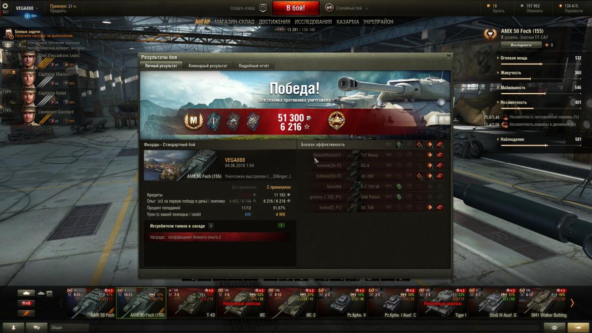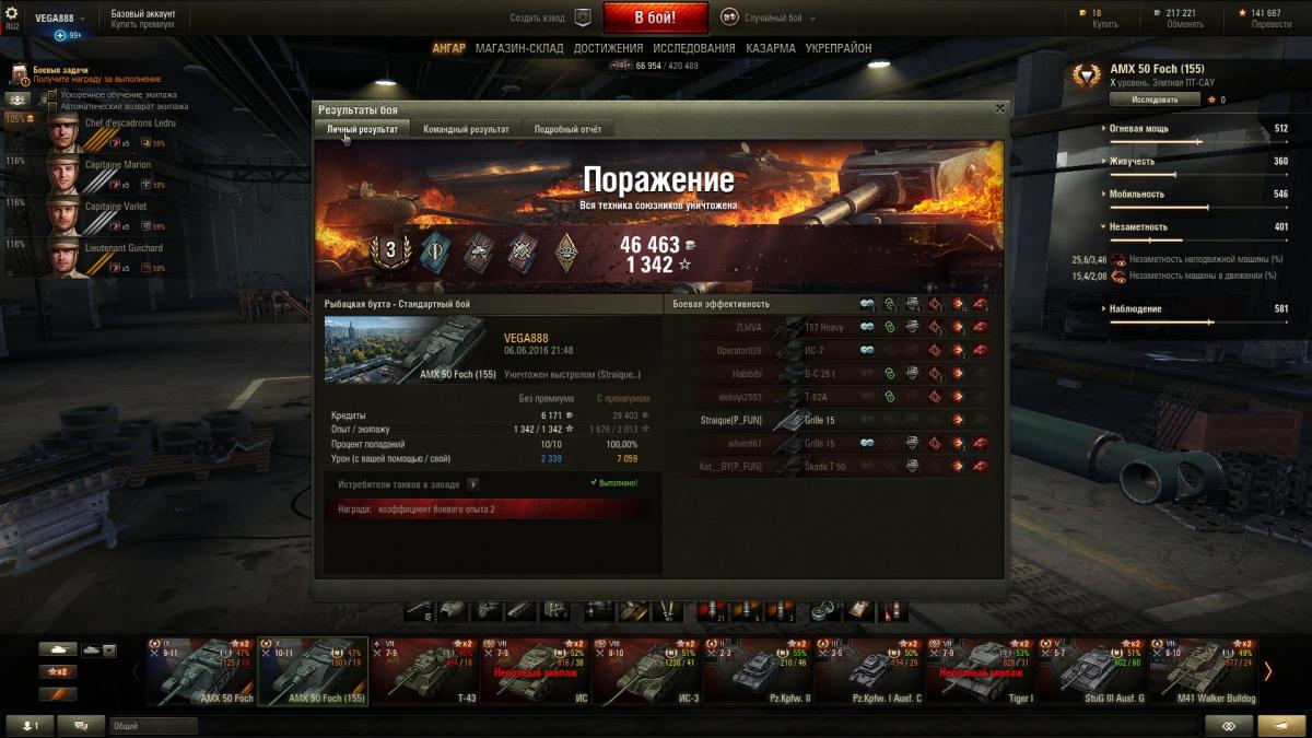 Чудные дела творятся с классностью по итогам боя. По большому счёту ничего не сделал и получил Мастера (очередного) (ПОБЕДА) а провёл бой с уроном на 7000 хп и насветил на 2300 хп,четыре фрага (ПОРАЖЕНИЕ) и всего то 3 класс!! Как такое может быть? Был убит последним. Раньше за "Достойное сопротивление" добавляли опыт и часто даже проиграв получали Мастера. 7000 урона и я не получил Основной калибр! Меня перестрелял Гриль! У него было 7300 урона! А вообще без вафли Фош снова в деле! Гриль в лоб не пробивает даже в упор. На меня один выскочил и с испугу стрельнул,не пробил а я его догнал и провернул ствол в одном месте.