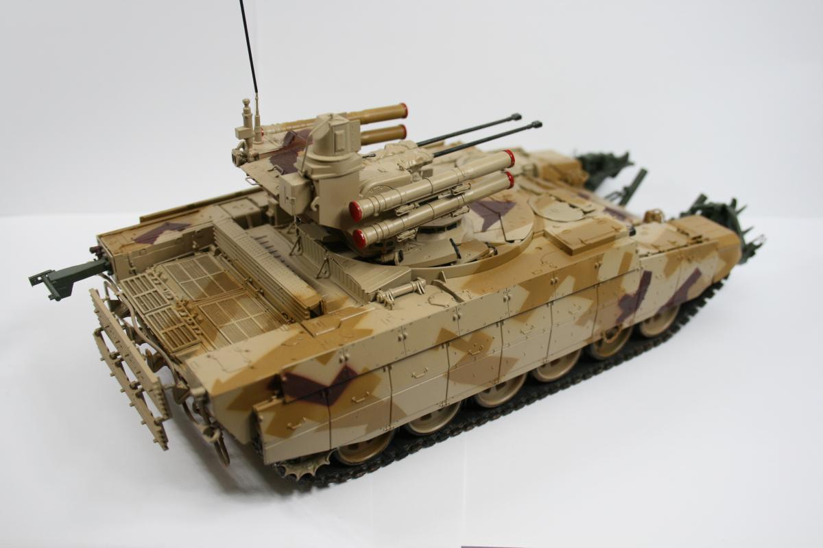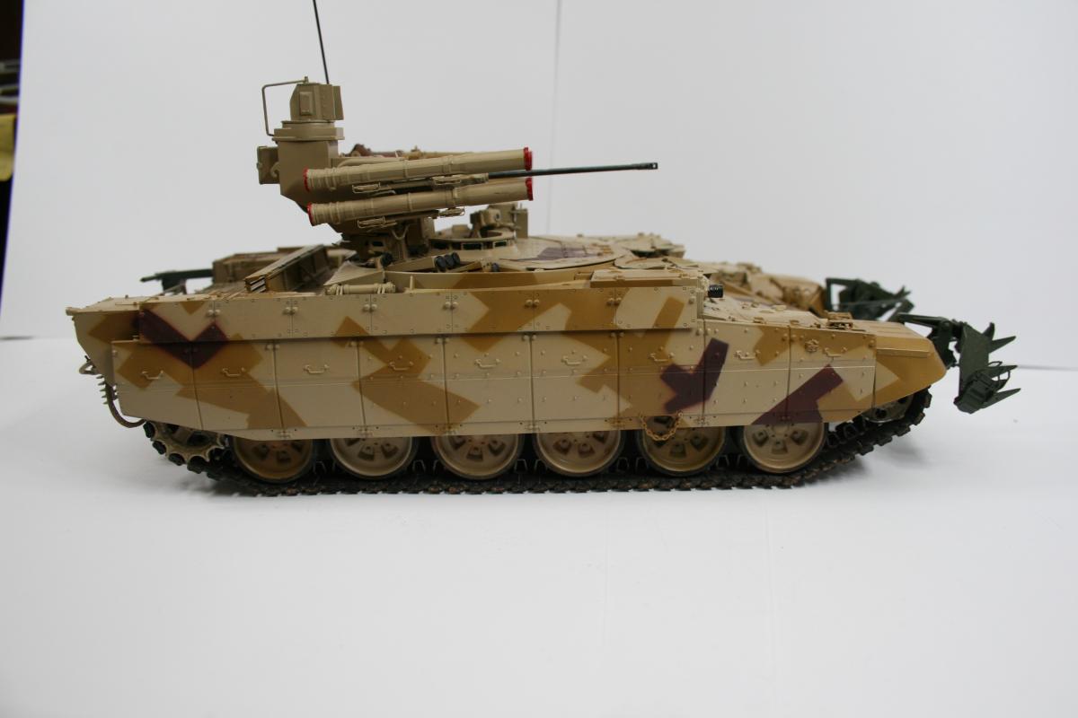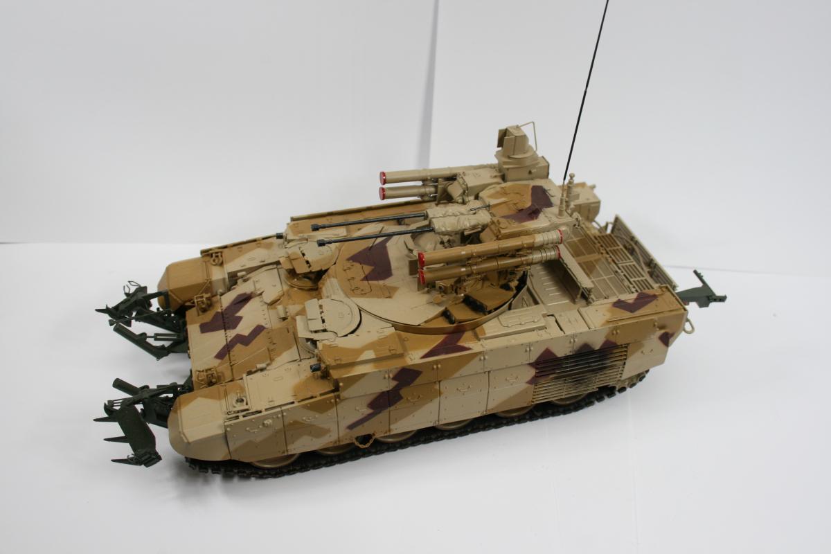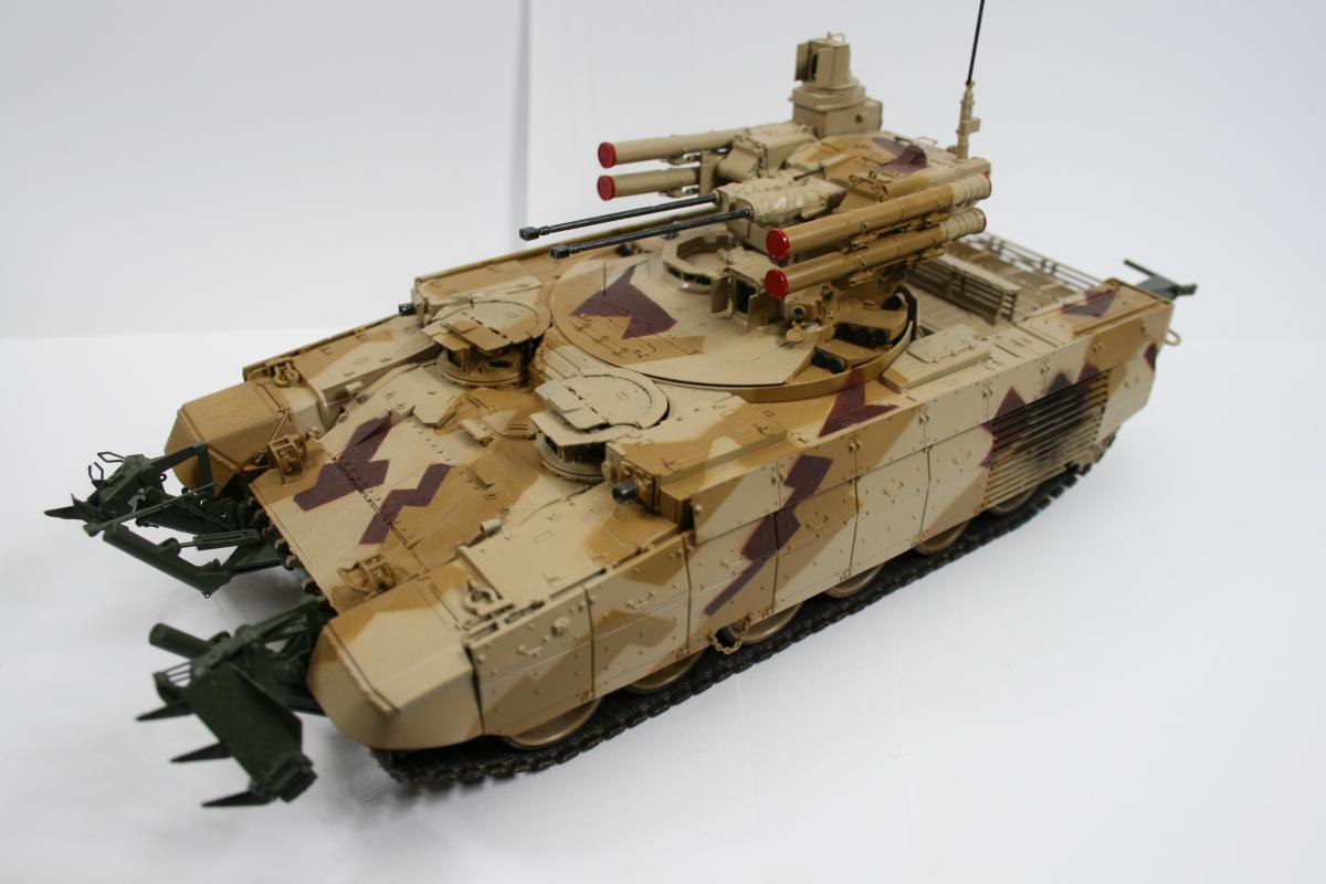 Доброго времени суток. Модель выставочной машины (поэтому такая чистая). Чуть припылена ходовая. Почему КМТ зеленый? потому что он такой в реале. Это навеcное оборудование, которое не красится в камо, обычно. Модель дополнена металлическими тросами от фирмы Eureeka XXL. Из этого же набора тросов взять точеный ствол пулемета. В остальном искоробка. Модель сложная в плане сборки, но соирается оч легко. Рабочая подвеска и траки. Модель стояла на полке около полугода, пока собирался с мыслями как покрасить камуфляж. Хотелось именно этот. В итоге была распечатан скан инструкции со схемой окраски, отмасштабирован. далее вырезались маски и по ним накрашивались пятна по основному песочному цвету. Краски Tamiya и mr.hobby. http://cdn-frm-eu.wargaming.net/wot/ru/uploads/monthly_05_2015/post-15761-0-28454100-1432538149_thumb.jpghttp://cdn-frm-eu.wargaming.net/wot/ru/uploads/monthly_05_2015/post-15761-0-03627800-1432538167_thumb.jpghttp://cdn-frm-eu.wargaming.net/wot/ru/uploads/monthly_05_2015/post-15761-0-32420400-1432538182_thumb.jpghttp://cdn-frm-eu.wargaming.net/wot/ru/uploads/monthly_05_2015/post-15761-0-11692600-1432538226_thumb.jpghttp://cdn-frm-eu.wargaming.net/wot/ru/uploads/monthly_05_2015/post-15761-0-05292900-1432538236_thumb.jpghttp://cdn-frm-eu.wargaming.net/wot/ru/uploads/monthly_05_2015/post-15761-0-66204800-1432538218_thumb.jpghttp://cdn-frm-eu.wargaming.net/wot/ru/uploads/monthly_05_2015/post-15761-0-98362600-1432538246_thumb.jpghttp://cdn-frm-eu.wargaming.net/wot/ru/uploads/monthly_05_2015/post-15761-0-78360300-1432538436_thumb.jpghttp://cdn-frm-eu.wargaming.net/wot/ru/uploads/monthly_05_2015/post-15761-0-54843300-1432538377_thumb.jpghttp://cdn-frm-eu.wargaming.net/wot/ru/uploads/monthly_05_2015/post-15761-0-57944100-1432538261_thumb.jpghttp://cdn-frm-eu.wargaming.net/wot/ru/uploads/monthly_05_2015/post-15761-0-41425300-1432538298_thumb.jpghttp://cdn-frm-eu.wargaming.net/wot/ru/uploads/monthly_05_2015/post-15761-0-51415700-1432538457_thumb.jpg