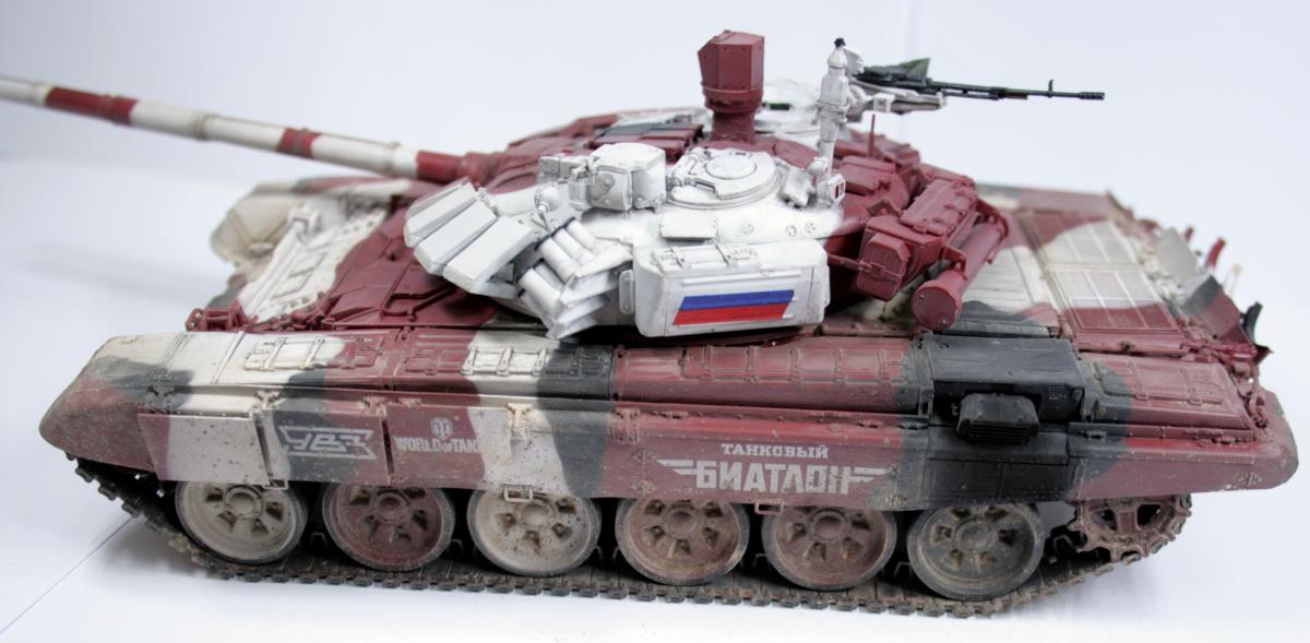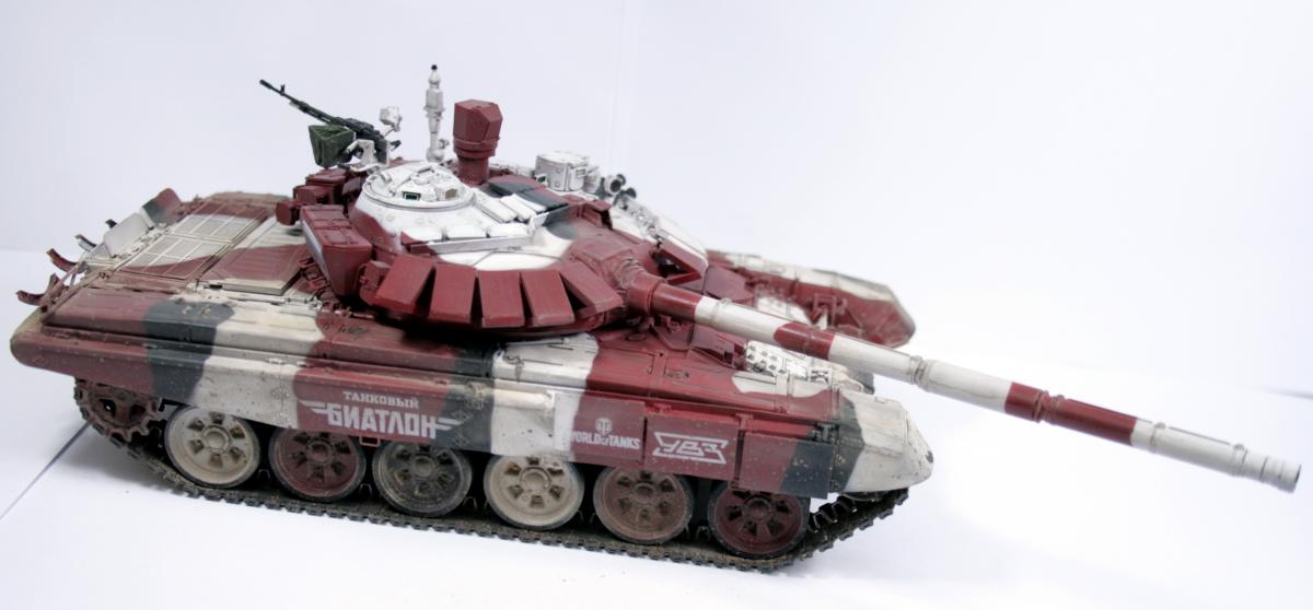 Начнус. Базой для модели будет слежить модель трумпетера т-72Б мод1990. К ней куплено ствол пулемета пкт, прицел ЭССА, траки мастерклуб, заказаны декали с символикой команды (в том числе и WOT). Фото вывешу вечером из дома. В данный момент собрана ходовая и траки. Закупаются расходники. Конечная цель построить модель к биатлону в этом году. т.е. на все про все есть порядка 1,5 месяцев. -
