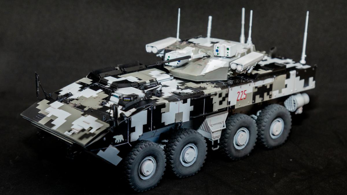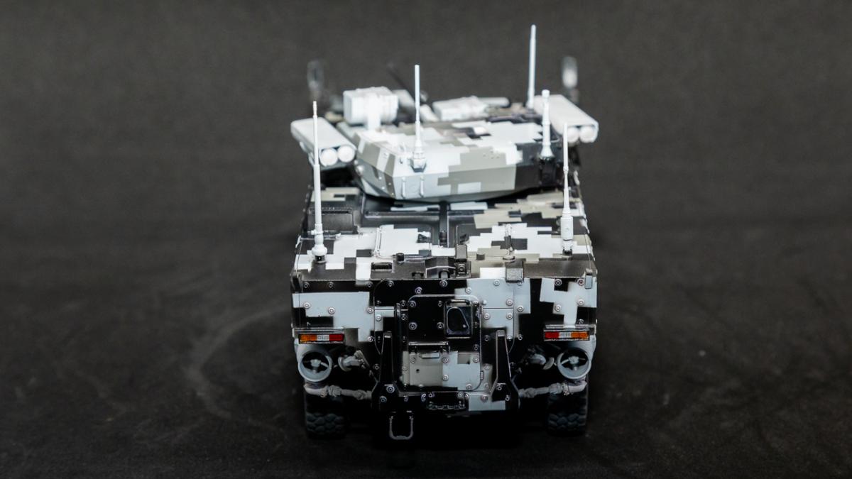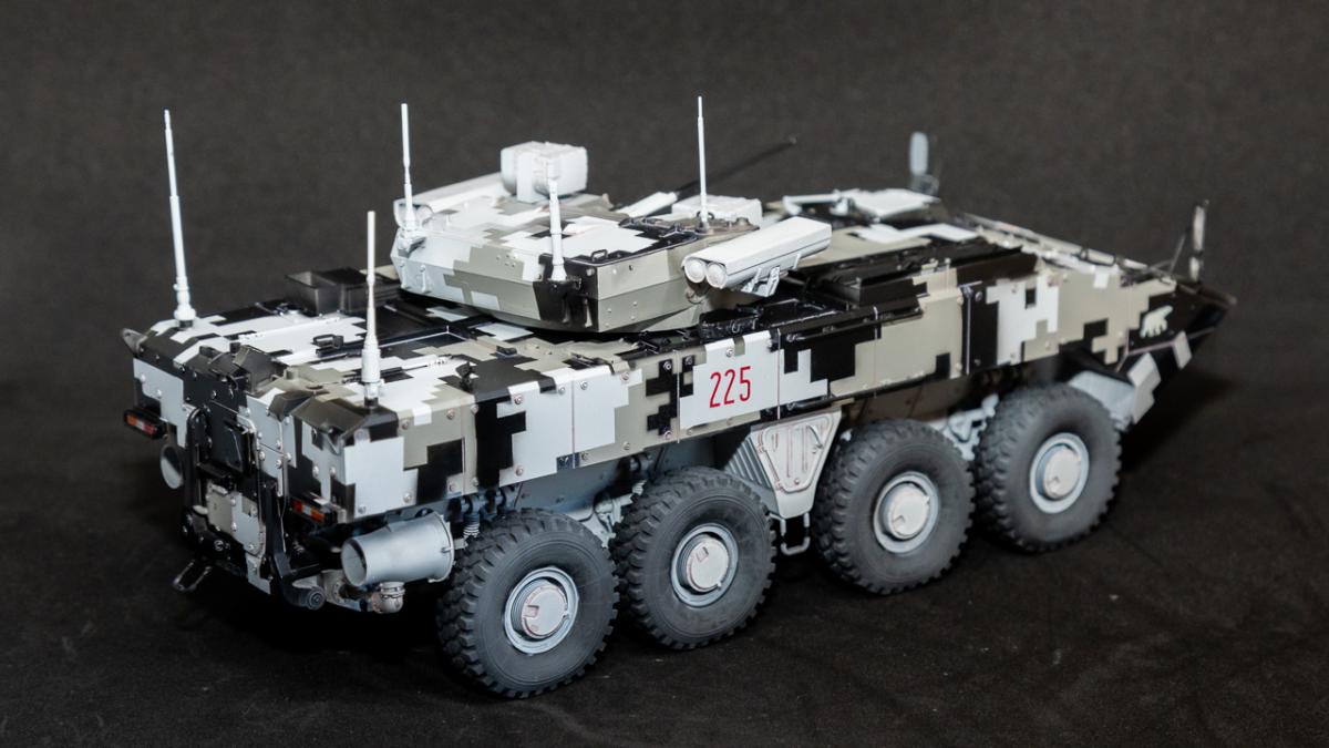 Закончил модель от "Звезды", БТР "Бумеранг".Сборка достаточно простая, хотя из-за габаритов не всегда удобная.Решил изобразить пиксельный камуфляж в зимнем варианте, правда немного напутал в последовательности масок и черного цвета получилось больше чем планировалось, но перекрашивать уже не стал.Красил традиционно акрилом от "Тамии" и "МрКолор"...