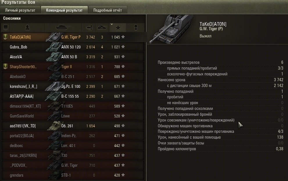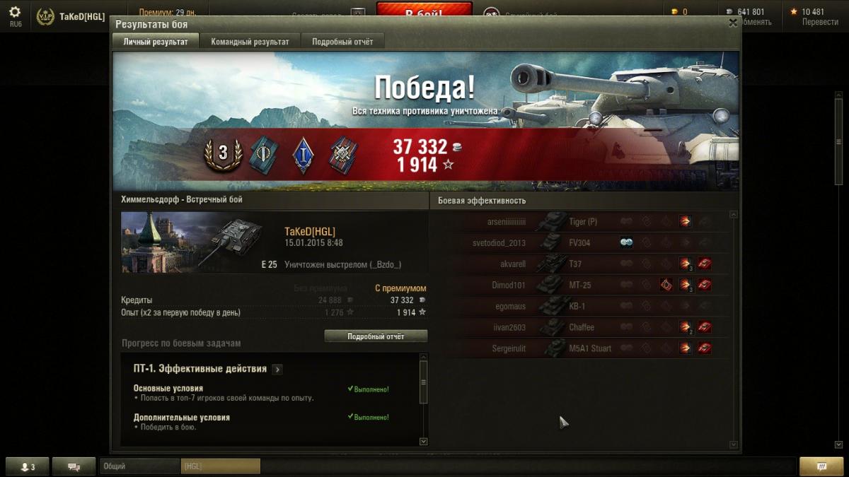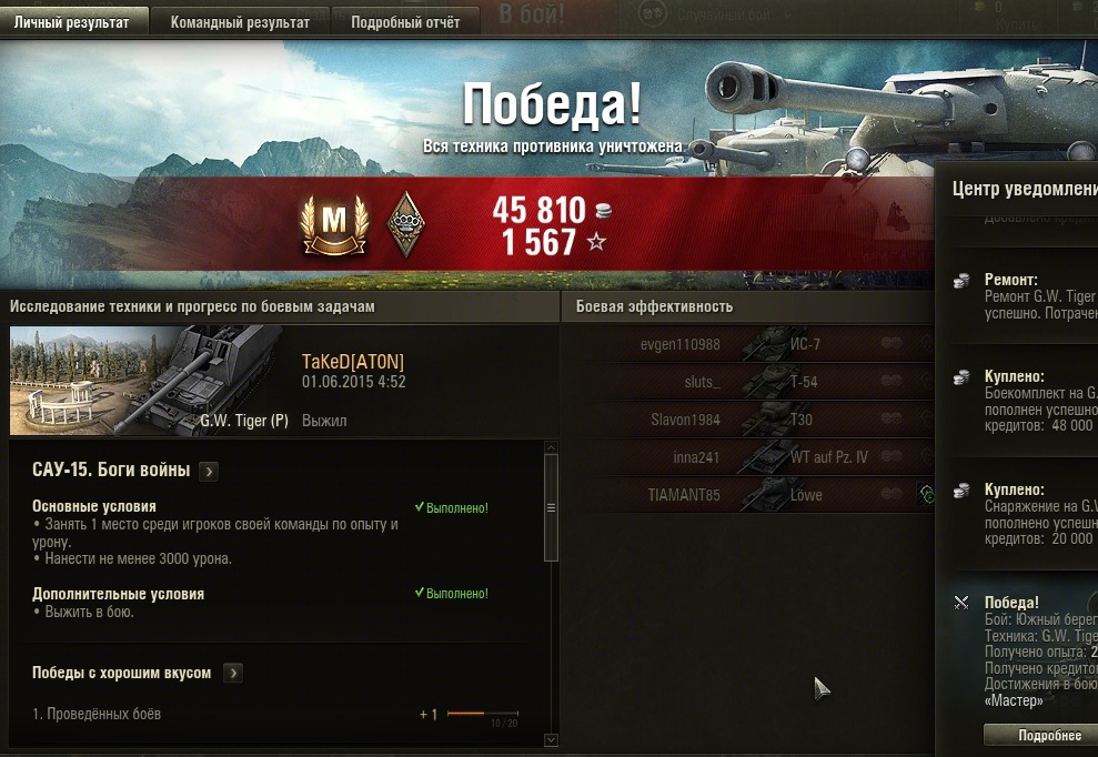 Всем привет, хочу поделится своим горьким опытом прохождения 15 задачи с отличием. Сразу скажу, что на выполнение задачи (именно с отличием) у меня ушло порядка двух сотен боев на арте 8 уровня - GW Tiger (P) Арту 7 уровня исключил по причине, что сложно набить урон, арту 9-10 - что сложно набить опыт. Так долго делал, по разным причинам (от балансировки карт и ЛТ на первой минуте и до турбосливов за две-три минуты). Пара-тройка советов от обычного игрока (не артавода), может кому пригодиться: 1. Если у вас САУ 8 уровня, то чтобы упростить выполнение (именно с отличием), то советую включить режимы "штурм" (ради Карелии и Песчаной реки) и "встречный бой" (ради Степей, более удобной Малиновки, а так же Прохоровки). 2. Взять себе совзводного на ТТ или САУ 9 уровня. ЛТ 8 уровня исключаем, т.к. при хорошей игре ЛТ ворует весь опыт, ПТ - урон, а СТ - все вместе). При игре с САУ - корректируете действия (так как нам нужен максимальный урон) 3. Чтобы получить хороший опыт делаем следующее: стреляем только по целям высокого уровня, стреляем по стандартным позициям, где часто стоят, но засвета нет, стреляем по всем ПТ-САУ 9-10 уровня с максимальным уроном. При игре с техникой 8 (то есть своего) уровня очень сложно набить опыт. Проверено много раз - Основной калибр + 3-4-5 фрагов - и в итоге 2-3 место, так как какой-то 6 лвл насветил 2000 а 8 натанчил 2000... Прилагаю бой, в котором прошел: Реплей смысла не вижу кидать, так как бой стандарт. Вкратце: Lowe - 410 урона, ИС-7 около 900 + килл, Т30 - 750 + килл, WT.aufPZ4 - ваншот 1600 хп. Всем удачи в ЛБЗ !! Т55А в ангаре =)