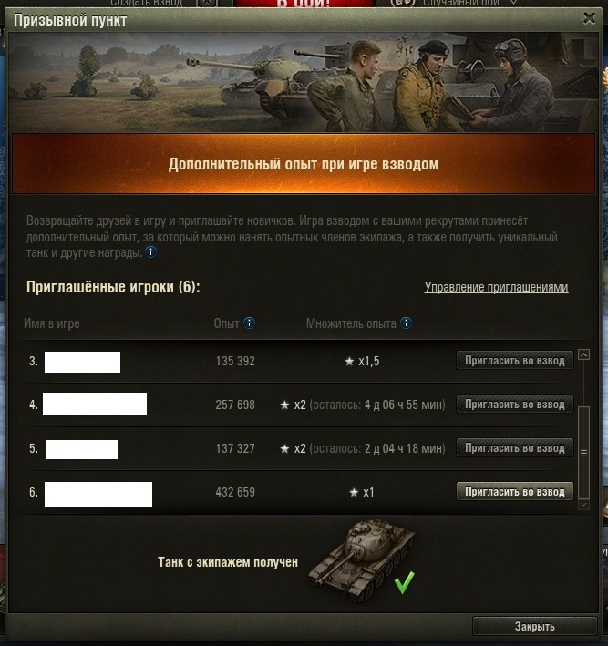 Здравствуйте! Получил танк с экипажем за заработанный рекрутами опыт, однако от игры взводом опыт продолжает поступать. Как следствие появились такие вопросы: куда теперь уходит этот опыт? Для чего он копится? Когда с рекрута будет снят статус рекрута? (пропадет значек в списке контактов). Уберут ли табличку с накоплениями рекрутов из интерфейса пользователей, получивших танк? Спасибо.