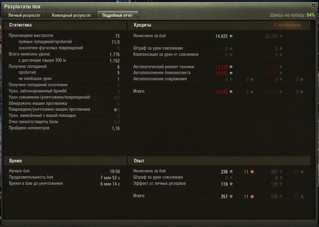 1. Спасибо. Я тоже дико извиняюсь, но Вы снова написали какую-то ерунду. Во-первых, игра не имеет ничего общего с реальным танковым боем. Во-вторых, я не думаю, что Вы участвовали в реальных танковых сражениях ХОТЯ БЫ в восьмидесятые годы прошлого века - не говоря уж о танковых боях времен ВОВ. Возраст у Вас, каким бы он ни был, ну никак не подходит даже под Шестидневную войну, со всем уважением к Вам. И даже под Фолклендский конфликт. Не могли же Вы участвовать в ирано-иракской войне или войне Судного дня, плюс еще парочке крупных войн конца двадцатого века, и не более того. А в остальных конфликтах этого периода танковых сражений практически не было.Поэтому заявление "я служил в армии, в танковых войсках" (при том, что я не вижу причин не верить Вам) ни разу не является критерием профессиональных знаний того, как работает та или иная боевая техника. В проекте, если не учитывать "бумажные" образцы - масса техники прошлого века от восьми государств. Вы что, на всех видах игровой техники, реально существовавшей, служили? :)Отвечу Вам: Да я не принимал участия в танковых баталиях (слава богу, служил в СА, в мирное время), да я не в состоянии просто знать всю военную технику стран мира. Но предназначение видов танков, пт и т,д., вынужден был изучать.А теперь о ваших парнях отслуживших в армии (без разницы рода войск), должны минимально знать что ПТ САУ (Противо - танковое самоходная артиллерийская установка, а не противо-пехотное самоходная артиллерийская установка) применялась в любое время для уничтожения таков любых видов, а также для уничтожения укрепленных сооружений, включая дзоты. Да это игра и это виртуальный мир, но хоть какие-то правила должны присутствовать при создании игры. Для чего вы тогда пишете характеристики танков? Если они потом , даже в игре не соответствуют действительности. Опишу мой случай, просто по телевизору услышал про игру. Думал погоняю для прикола, вспомню молодость. Так и начал для прикола бабах бабах, потом посмотрел да ты что, какие-то сопляки нагибают меня. Начал просматривать и выбирать технику, по характеристикам которую описали ваши специалисты. Остановился на ветке гриля. Какое было мое разочарование, что написано, и что на самом деле представляет собой ветка. Играю в основном на пазике, понимаю фанера, и.т.д и т.п. Но то ,что она будет такой не пробивной (для пт) и косой ( для такой длины шайтан трубы) меня просто поразило. Не спрашивайте меня только причем здесь длина ствола, не разочеровуйте. Почитал и выбрал ее еще потому, что много на нее жалоб,( на форуме, даже видео выкладывал кто-то). Короче: провел на ней почти 6000 боев, обкатал на нет. Но поверти, что очень большие различия в характеристиках ( которые написали ваши специалисты, отслужившие в армии)и действительностью в игре. Например: пробитие БАЗАВЫМ снарядом 207-345 мм. Поверти, не разу не пробил тт в лоб или корпус спереди, а выцелить в слабые места на расстоянии с такой косой пухой очень сложно. Не будем говорить, что очень часто даже сбоку или сзади не пробиваются ЛТ на два уровня ниже. А Вы мне говорите о ваших коллегах с узкой специализацией. В заключении прикрепляю файлы. И прошу обратить внимание на количество выстрелов, попаданий, пробитий и с каким уровнем проводил бой. И у кого из них броня превышает 345мм?. Спасибо за правильное понимание.