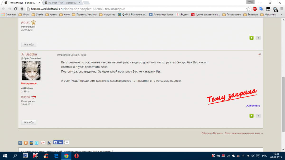 да пофиг. Игр на компе больше нет чтоль? Я не парюсь Сливы-сливы-сливы, начинаю топится, просить меня уничтожить если сам не могу, если не уничтожают то ЗАСТАВЛЯЮ. Ну дадут бан на день-фигня и лирика....вот сегодня бан слетел вчерашний. Урок не понял. Устраняйте причину а не последствия. Настройте наконец баланс чтобы у людей нервы не сдавали и они не топились/мешали/стреляли по союзникам