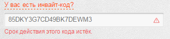 Здравствуйте, в прошло году покупал "Танкобургер" в "Бургер Кинг" мне дали карту с бонус-кодом и инвайт-кодом. Проблема с Инвайт-кодом, решил создать новый аккаунт и использовать этот инвайт. На карте написано, что он действителен до 01.07.2016 , при его вводе, написано "Срок этого кода истёк." Кто то уже писал подобную тему и проблема совпадает. Модератор там ответил, что проблема в не чищенных "куках" . Я их почистил согласно с правилами. Но проблема осталась. Всё так же пишет "Срок этого кода истёк." Что делать??? Заранее спасибо.