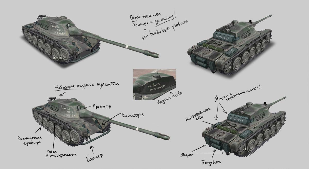 А почему Леста делает стили только некоторым танкам? А че еще по 250 стилей не придумать на одни и те же машины а? ИС-3, ФВ бабаха, СТРВ - по 50 стилей уже в магазах на них... А других танков не существует, да? АМХ CDC, FCM 50t, Т54 обр 1, Пантера/М10, об 430У, СУ-122-44, Черный Принц, СТБ-1, Т-10, Комет, Центурион и т.д. - их не существует, да????? Что за политика делать стили только для популярной техники? Я например, хочу 3Д стили на свои AMX CDC и FCM 50t. И не какое нибудь безвкусное нагромождения всякого какого только есть хлама поверх танка, мизза чего красивый танк превращается в уродливую бесформенную кучу мусора, а стильный, сдержанный стиль, как то на СТБ, который из коробок был вроде. Или на Шкоду Т27 "Ян Жижка". Или как у Об. 430У. Или у Коня "Часовой"... Или на Юдес 15/16 "Живая сталь"... Вот я накидал стиль, просто, сдержанно и со вкусом. Прошу ввести такой стиль для CDC и с такими же пропорциями предметов как на моем наброске. (Так же прошу и ввести подобные стили на вышеперечисленные танки)