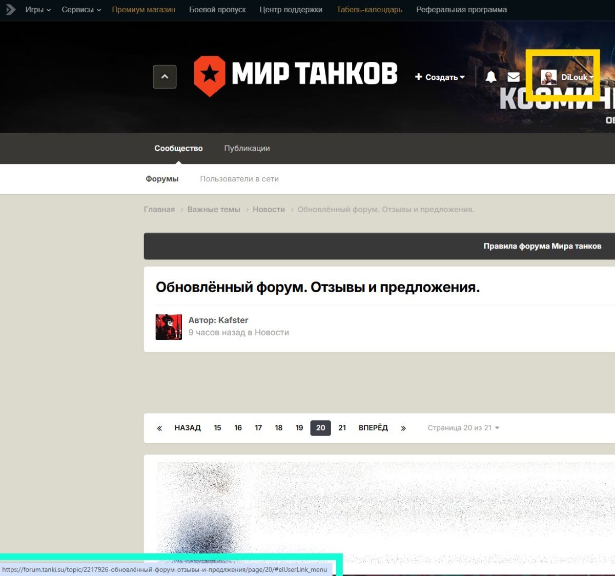 Кликаю колесом мыши по своему нику вверху страницы. Ожидание: открытие своего профиля на новой странице. Реальность: открытие дубля этой же темы.