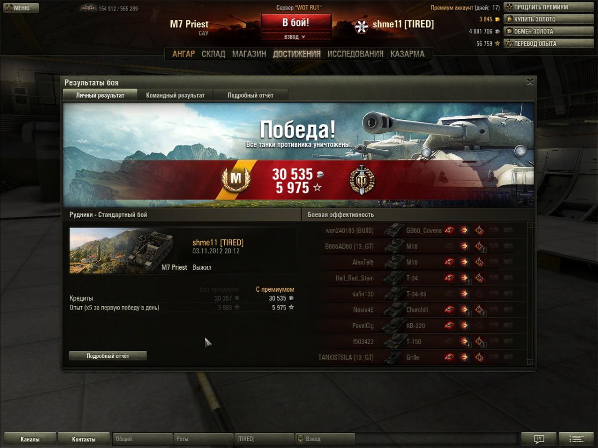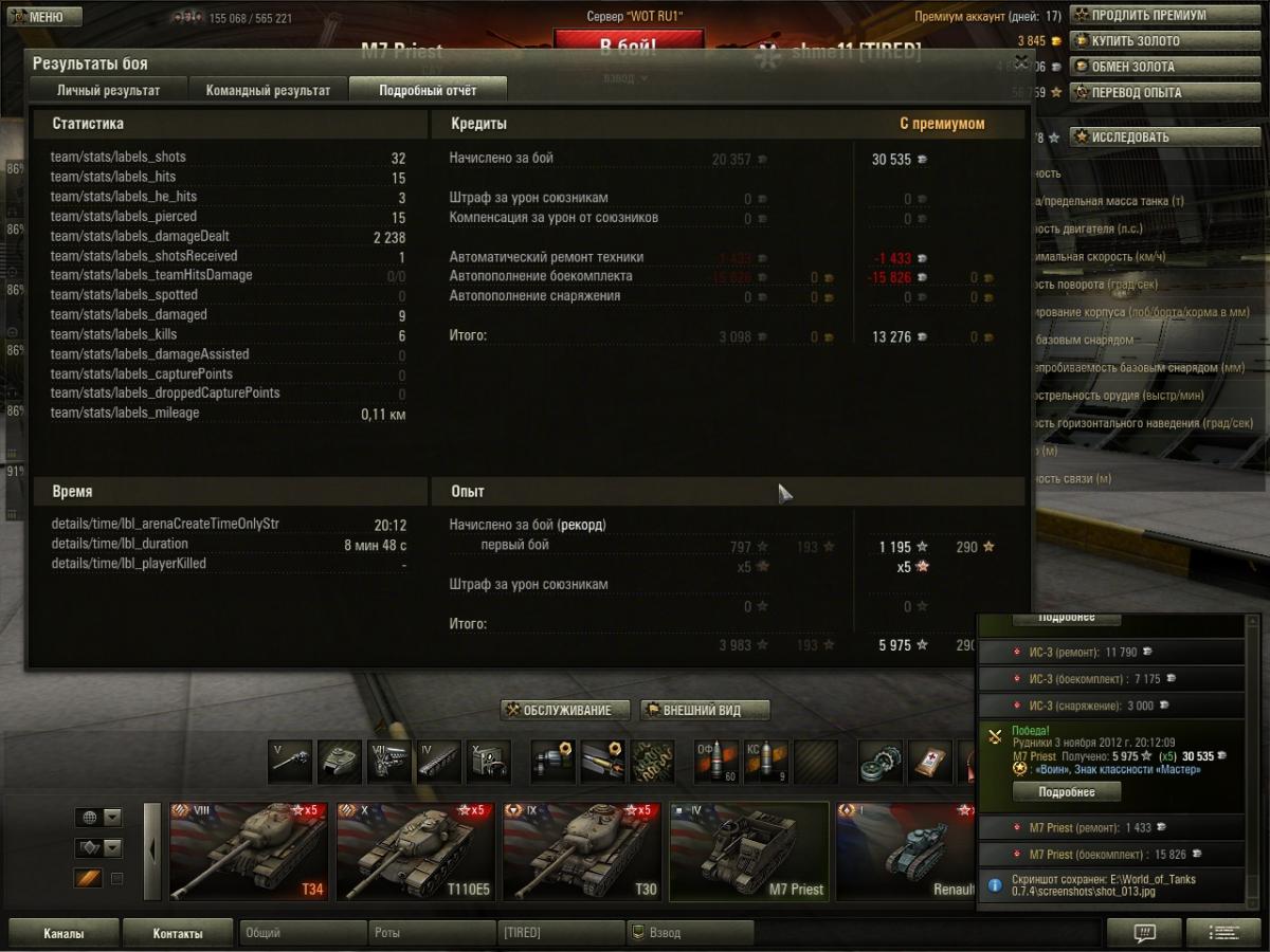 Рекорд по кредитам на M7 Priest при победе Победа! Рудники 3 ноября 2012 г. 20:12:09 M7 Priest Получено: 5 975 (x5) 30 535 : «Воин», Знак класcности «Мастер» http://wotreplays.ru...hme11-m7_priest