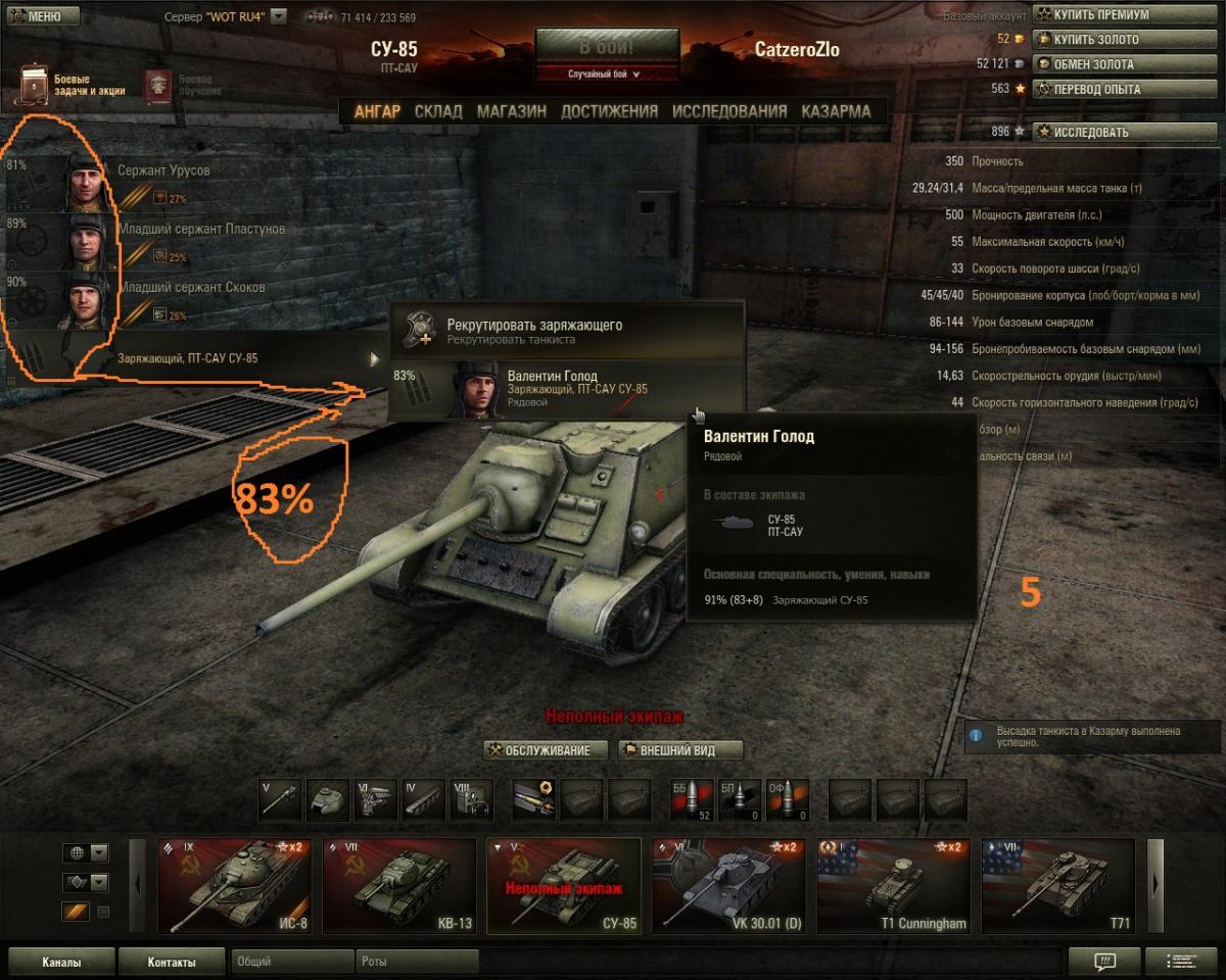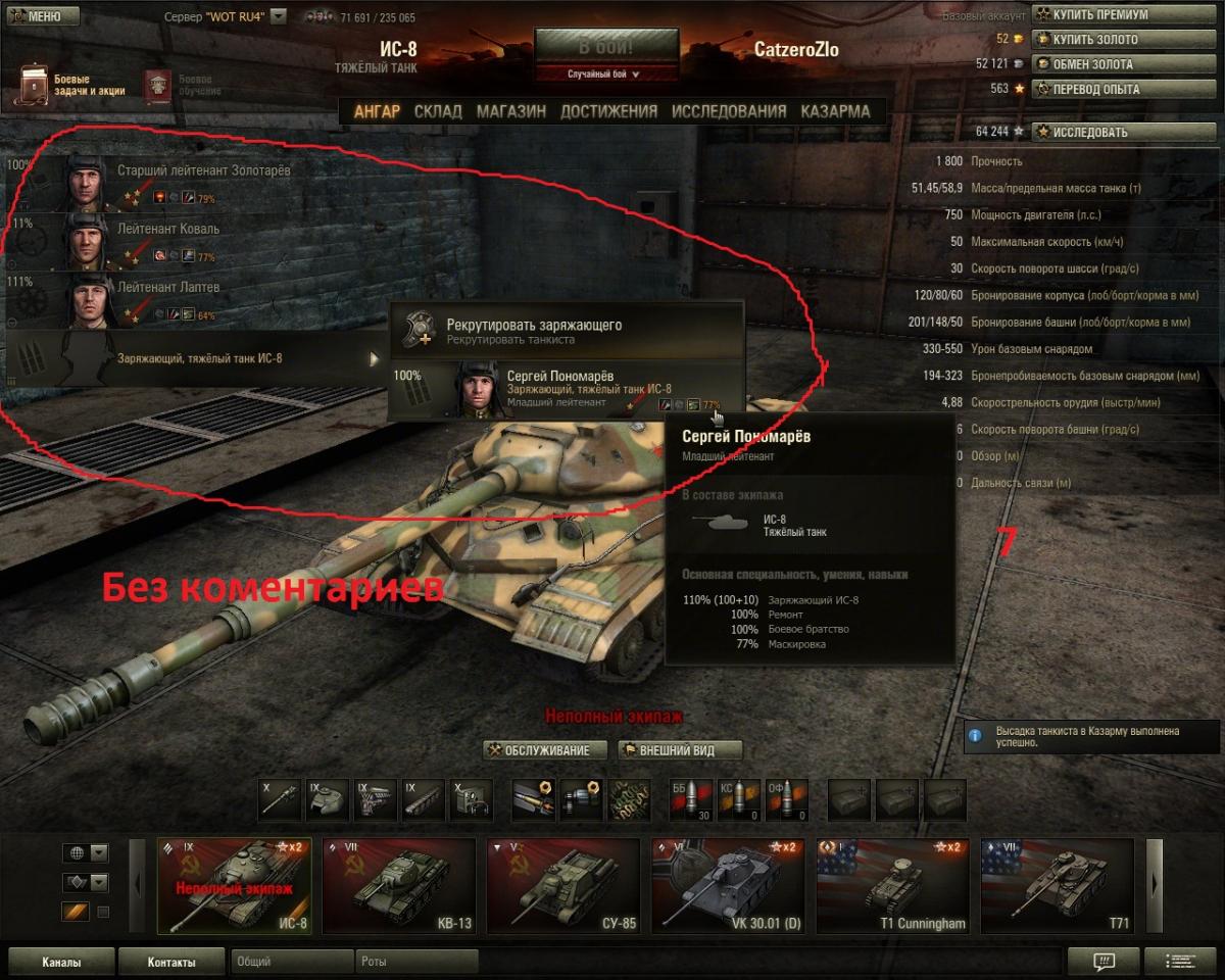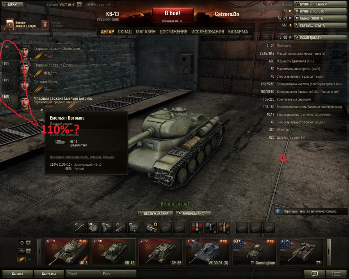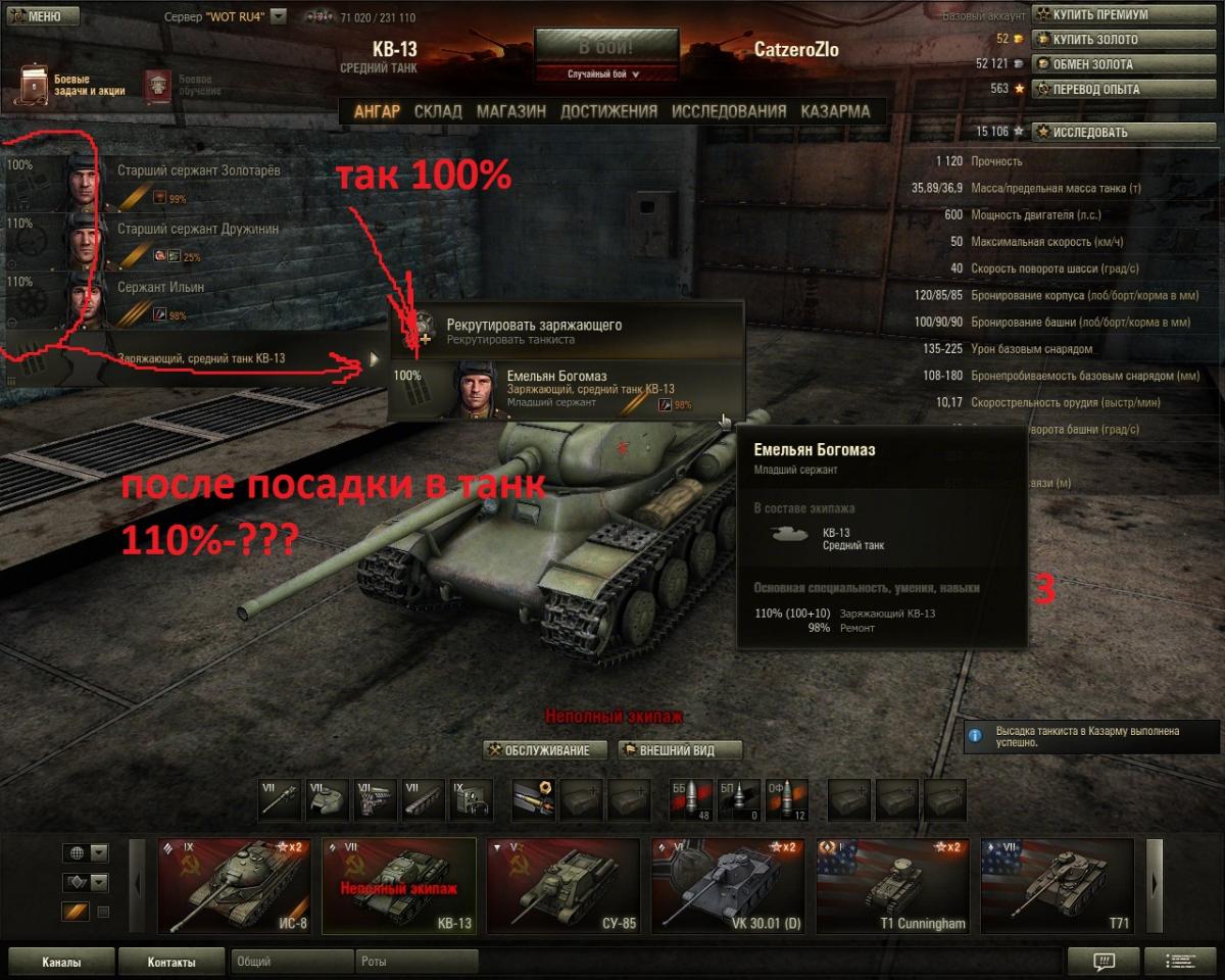 Дорогие разработчики подскажите страждущим когда проводили тест обновления вам ни кто не жаловался на глючность обновы? Вот например наводчик моего танка достиг 100%, перк не открылся и надпись осталось 9 боёв до повышения способностей наводчика!!! На танках которые со 100% экипажем 110%,116%, основной специальности? При пересадке экипажа его можно переобучить до 81%, 72% ну и до 100% Это как понять пересадил экипаж на другую машину у экипажа было по 98,100% после пересадки процент поменялся на 76,75% а переобучить я смог до 81%??? Когда ждать корректного отображения опыта экипажа на танках, а то я думал что у танкиста уже 100% а по факту всего 91%