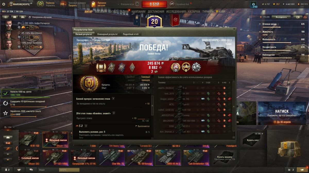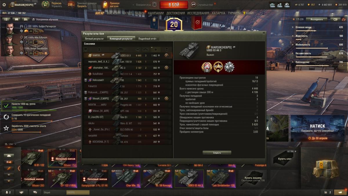 Че-т Мастеры посыпались на этом чуде. Напулял 5300, суммарка 7100. И опять игра от обзора и маскировки. Хомяк сильно огорчился, приложил скрин