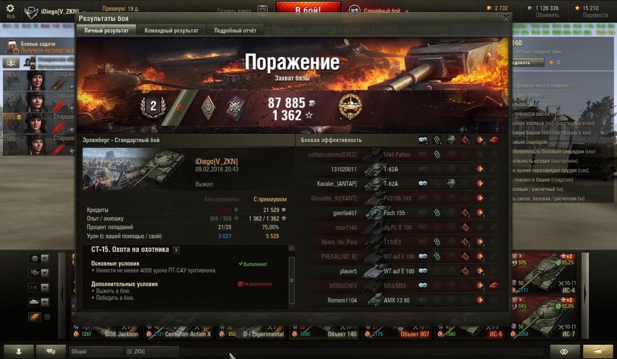 Захват базы выполнен на мурованке стандартный бой, через зелень! Совет берите скорострельные тяжи (е5,фв215 насчет барабанов хз, останется 1 выстрел(3991 дмг),а вы на кд ) и взводного с которым очень давно покатушки устраиваете)) первым на захват встал собственно я, а через 10% захвата, взводный, правдо без доп.условия. Осталось тт-15, в 1 же бою почти зашла на маусе, 2к не хватило