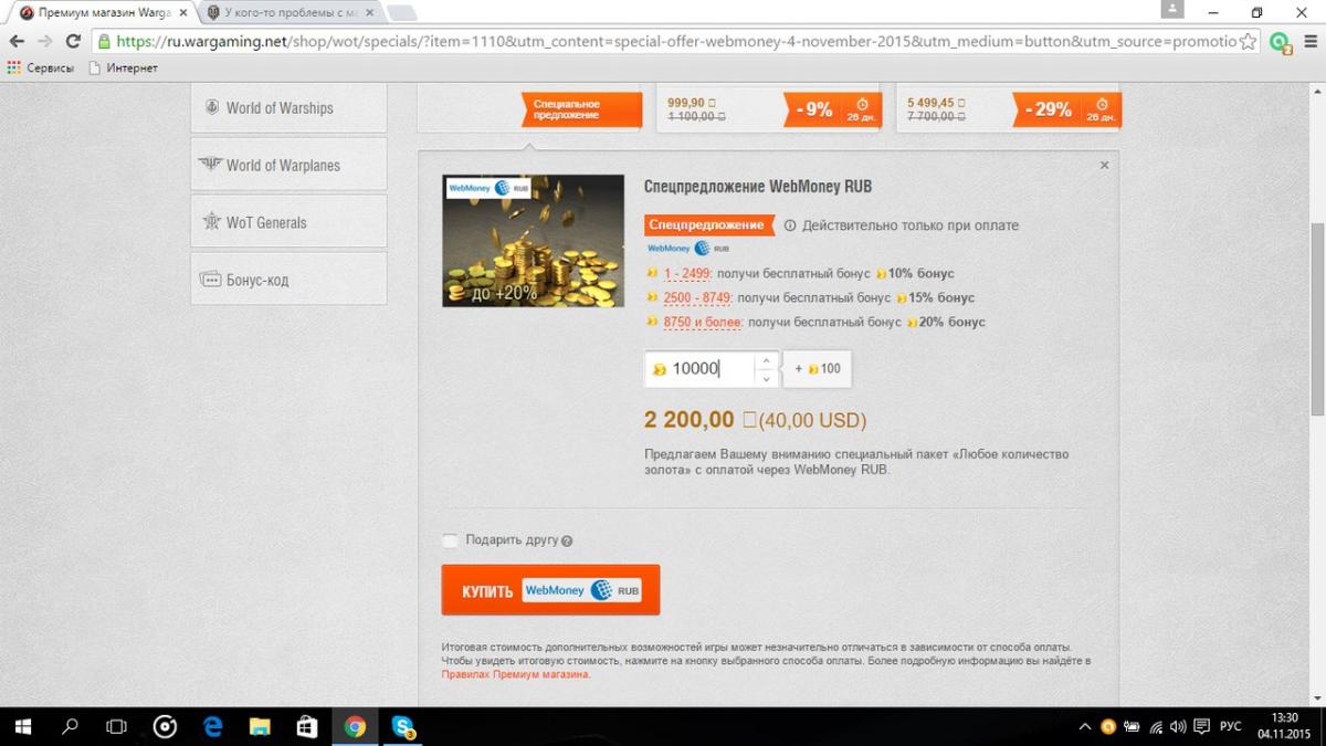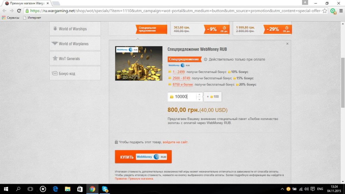 Увидел новую акцию ( на голду через вм), решил прикупить 10к и получить бонус в 2к голды ( 20%), значит ввел 10к и бонус то у меня 100 голды) норм) P.s. не смотрите на гривны, за рубли бы брал) Кстати, с рублями тоже самое)