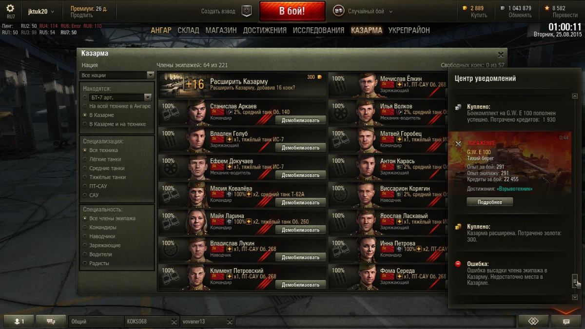 я наверно конь педальный???? или может скажите мне не везет??? Рейтинг WN8: 1 292 Побед: 9.09% (1 из 11) Средний опыт: 457 9 124 Средний урон: 944 10 384 ± Фрагов за бой: 0.82 9 N Попаданий: 75.19% (97 из 129) Кредиты: 116 440 (232 393)