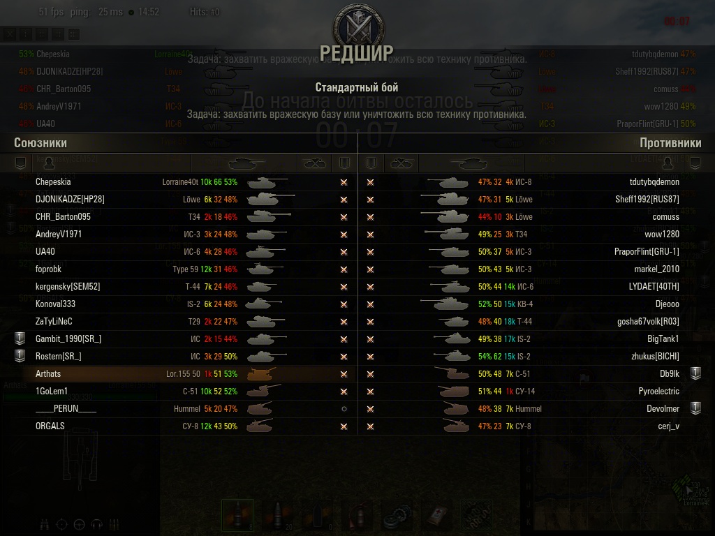 Воюю на Lorraine 155 50. После патча ВБР как будто специально ставит на сливную сторону... по оленемеру вероятность победы в бою от 30 до 45% и так вторые сутки подряд... ВБР так настроен или это случай? Кто Lorraine 155 50 юзает не замечали ничего подобного? У меня процент побед упал с 55% до 44%... я в шоке не знаю что делать... Веду щас статистику, если у противника тоже есть Loraine 155 то шансы на победу есть и оленемер показывает 48 - 50% на победу в бою. Если у противника Loraine 155 нету, то это слив сто процентов, и оленемер показывает 30 - 45%.... Видимо арта очень хорошая и ВБР накрутили...
