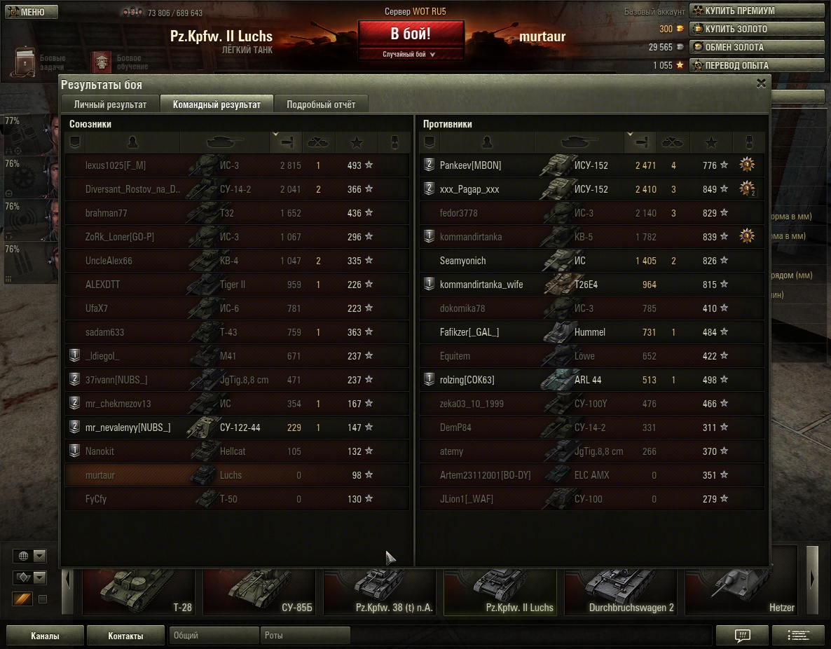Добавлять скрины не стал, т.к. их здесь и так столько, что ......., а ответов нет, только предупреждения на бан. Уважаемые модераторы! Я конечно извиняюсь очень, но кто-то у вас перемудрил с этим балансиром. Если кому нравиться такая расстановка сил, то можно в настройках добавить, внести окно с ограничением, выбором максимального уровня противника.или там сервера как то разделить по уровням техники? Почему нет? Для тех кто играет давно, и у него вся техника 10 лвл (и он хочет показать свой профессионализм) купит себе что-нить 2-3-4 лвл и начнет мочалить своих друзей-недрузей, соклановцев и пр. с 8-м или 10-м лвл, (я так наверно тоже сделаю, но потом, позже, через год-два-три), а сегодня хотелось бы с равными по уровню техники состязаться,ну +1, игроки итак разные в профессиональном уровне, а то выходит запрещено играть с равными по лвл., только более верхнего уровня, вопрос в том, какой выпадет этот верхний лвл 6-7-8 ??? НЕ знаю, между 7-8-9 и 10 может разница и не велика, но в середине сетки она довольно ощутима по все параметрам. НЕ МОЖЕТ 4-й лвл ПРОТИВОСТОЯТЬ 8-му лвл, !!! С каждым боем интерес к игре стал угасать,статистика стала падать на глазах. ведь праща когда то была серьёзным оружием, как впрочем и бумеранг, но как вы сами прекрасно понимаете глупо и не очень результативно этими средствами воевать против огнестрельного автоматического, хотя их всех объединяет дистанционное поражение, а нанесение вреда не сопоставимо разное. (а есть еще и средства индив.защиты типа бронещитов-жилетов и т.д.) решил вставить, так подряд было 11 заходов, испытывать балансира надоело, закрыл и вышел (((