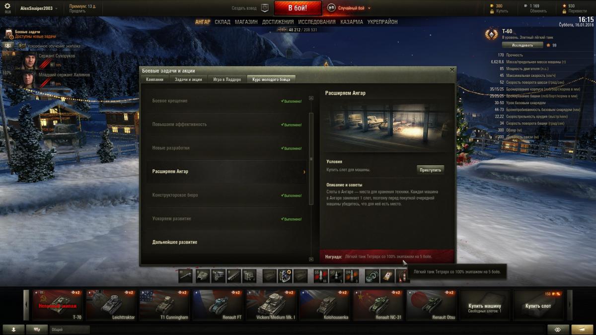 Ребятки, привет! Прохожу цепочку задач "Курс молодого бойца", баг с одним из заданий, где дают Тетрарх в аренду. Приобрел слот за бесплатно, как описано в задаче, но задача все равно осталась невыполненной. Аналогично теме: Вот скриншот, видно что слот остался только за золото, а задача все еще не выполнена. http://cdn-frm-eu.wargaming.net/wot/ru/uploads/monthly_01_2016/post-16919477-0-04719300-1452938198_thumb.jpg