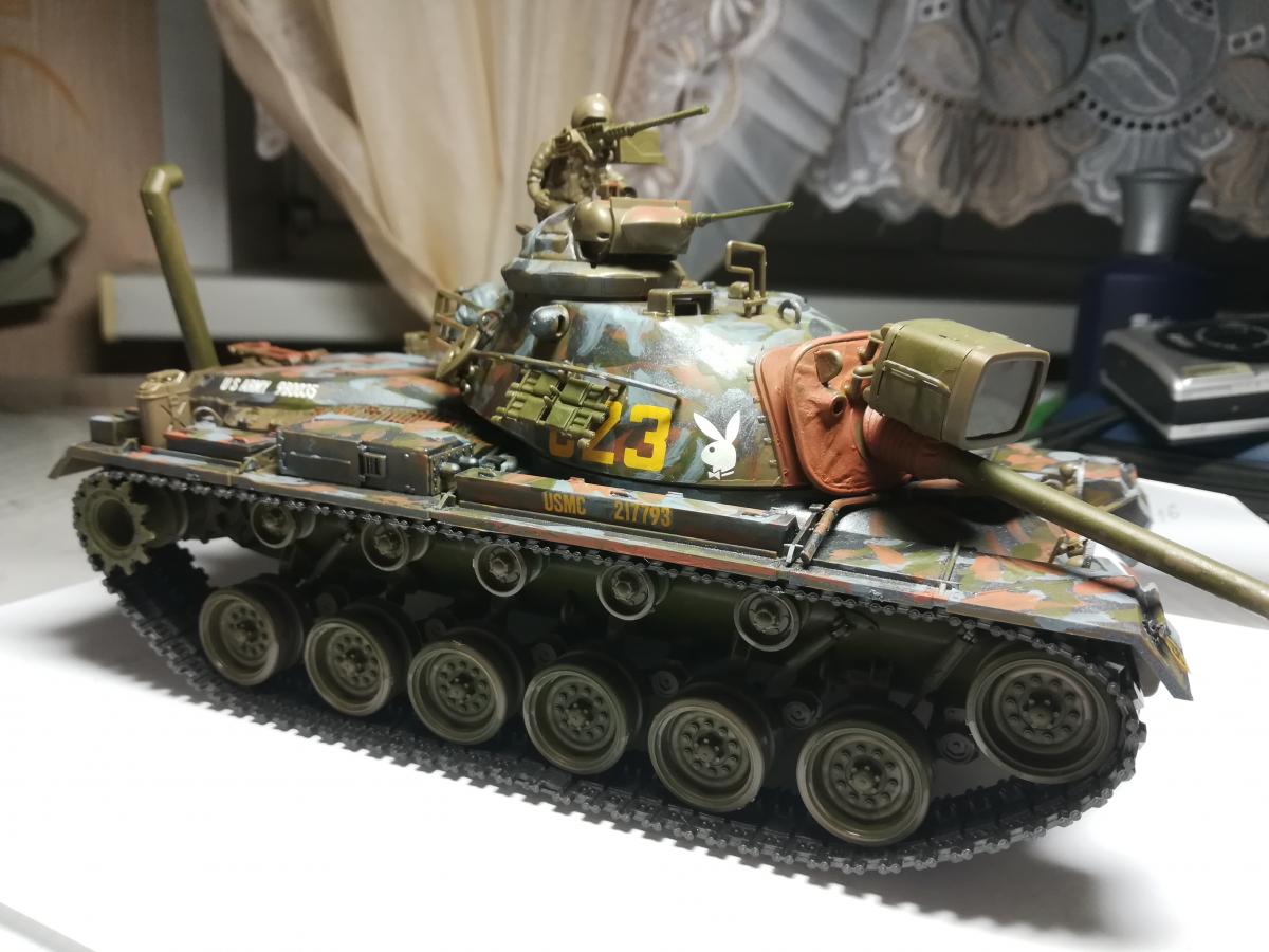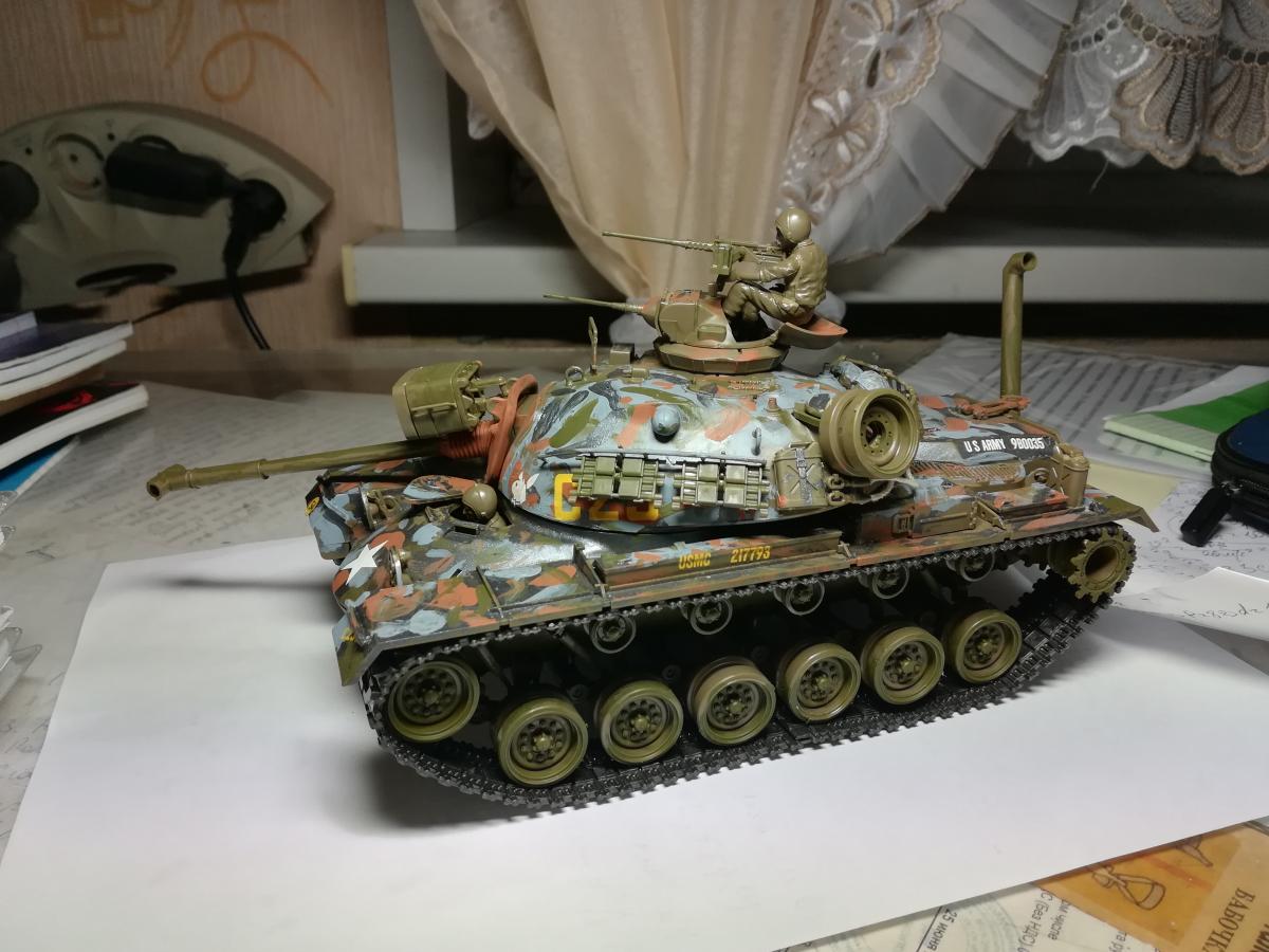 Средний танк американского танкостроения м48а3 Паттон К сожалению, для создания более правдоподбного камуфляжа на момент сборки данной модели необходимых оттенков краски не имелось. Решил разукрасить пятнами наподобие того камуфляжа, который есть в игре) П.С. Краски покупал для покраски танки т80 БВ от звезды, но позже на день рождения подарили паттона и я решил пофантазировать с имеющейся краской )