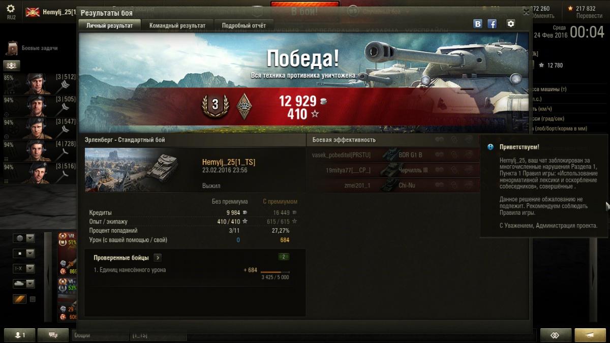 http://cdn-frm-eu.wargaming.net/4.5/style_images/wg/snapback.pngBlackQirajiBattleTank (19 ноя 2019 - 03:08) писал: после последней микрообновы в случайных боях случайным образом зависает клиент в ЛФ нет никаких проблем, в рандоме за 10 боев два раза клиент зависал намертво ранее такого не было, модов не установлено на данный момент кто сталкивался? как лечить? Я полностью согласен! Только в рандоме всё более-менее нормально,а в остальных режимах (особенно в ЛФ),просто ужас какой-то! Я уже столько резервов просрал и рангов... Разрабы,вы когда-нибудь настроите игру нормально,задолбали уже!!! У вас даже сайт (и особенно,форум)толком не работают!!! *** знает сколько времени пройдёт пока на сайт или форум зайдёшь,да ещё и ошибку может выдать!.. Почините уже всё,за****и уже!!!