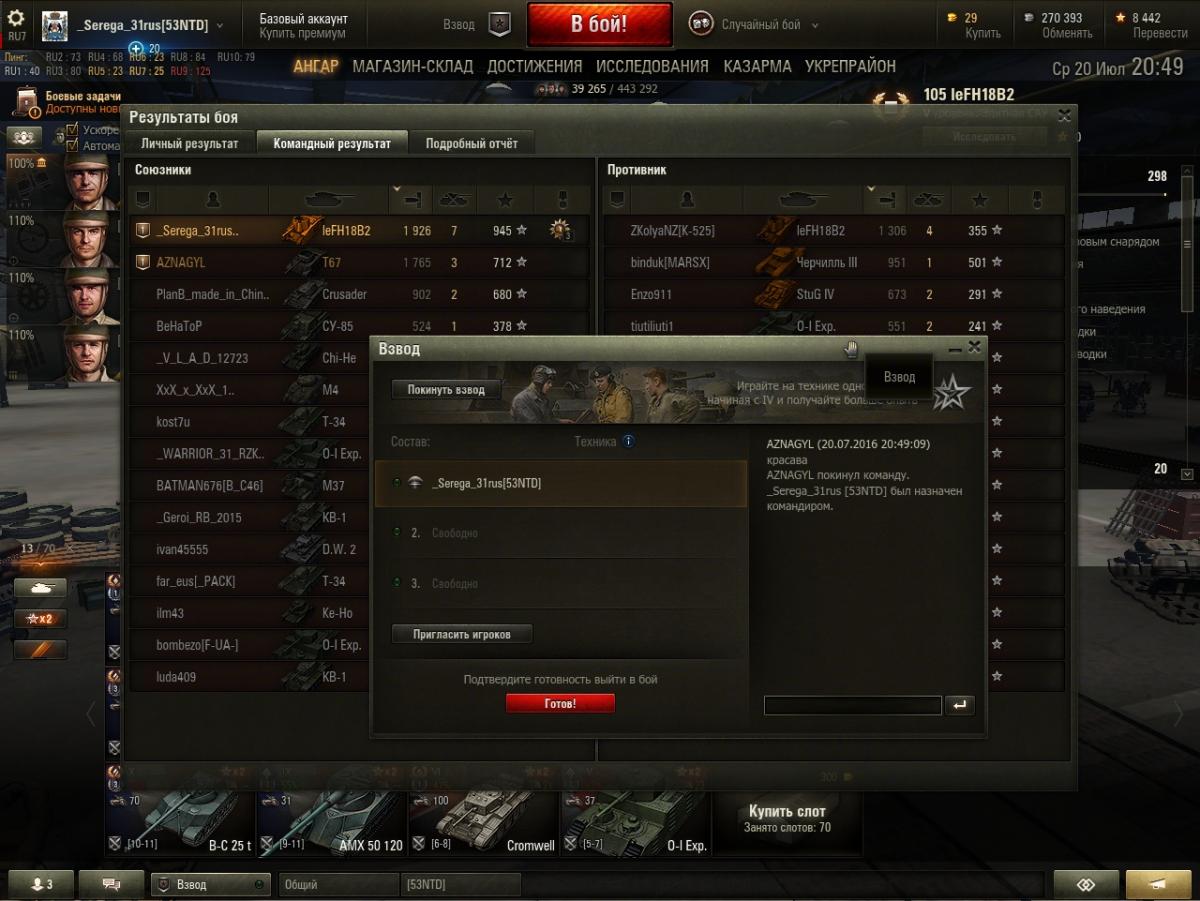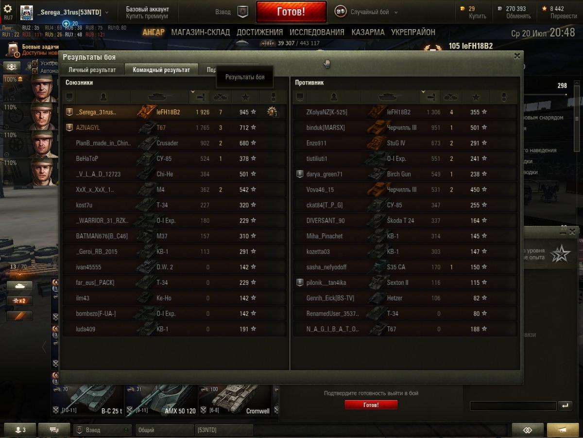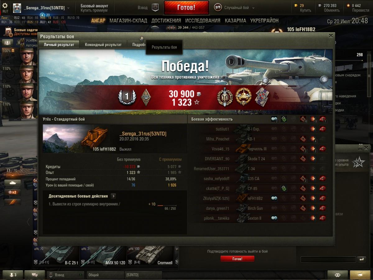 ЛБЗ .Не угадала. использовать начал мод "Сау здорового человека" Рекомендую и поймешь почему. В этом бою был верхний респ-стал возле железки и тупо стрелял . Наши 6 тупо слили аллею полностью и мои последние выстрелы были по пт бритов , но не попал. В команде противника никто не стоял и врать или что-то придумывать? ....Не вижу смысла. А то что арта косая это да.. По поводу ЛБЗ. НА штуга прошел, а вот 15 на арте нет и в этом бою только 4 по опыту. Вопрос -БЕЛГОРОД? Истину глаголиш камрад!