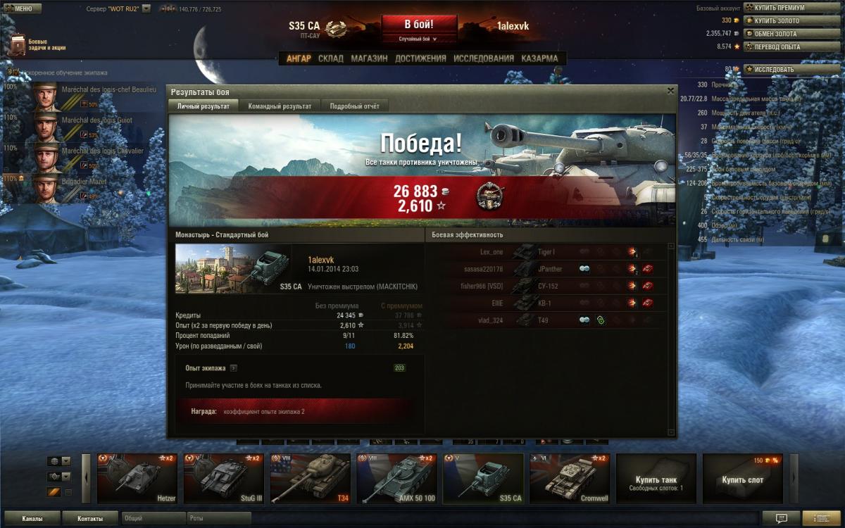 Блин, ну не понимаю как на этом танке играть? На нём у меня самая убогая стата, одно расстройство, вроде и экипаж прокаченный, и вперёд стараюсь не лезть, без толку. Может конечно привыкну, найду его "фишечку", но пока получается не очень.