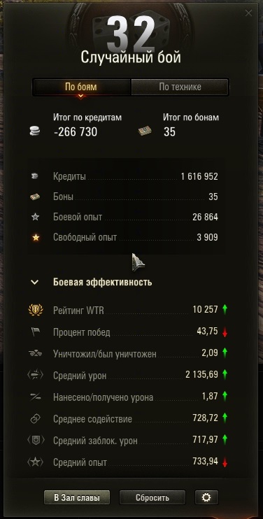 Отыграл 100+ боев после "апа". Отметка 92.6, экипаж 8 перков. Картошка явно что-то подкрутила на стороне сервера, динамика танка изменилась в худшую сторону. Печально, что они бесповоротно выбрали путь казино, вот и тайпа в какой-то скрытый пул добавили. По статам - огонь. По факту - танк на любителя. Правда, пользователь это поймет, только купив оный. Вангую его продажу (или коробки) на Новый Год. Это печально. Впрочем, это еще один голос в копилку того, что ни рубля картошке заносить не стоит. Пусть любители гемблинга и оплачивают этот цирк. Как-то так стало "играться":