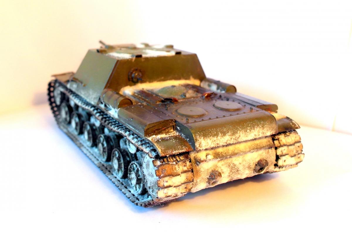 Спасибо. На немногочисленных фотографиях данного самохода он изображен либо в цеху либо в снегу и мокрым. попытался как смог изобразить мокрую броню, намазал его эфектом воды от зипа но мне кажется надо было просто глянцевым лаком, хотя на самой модели если присмотреться то видны и лужицы и потеки, на фото из-за плохого качества не очень видно.