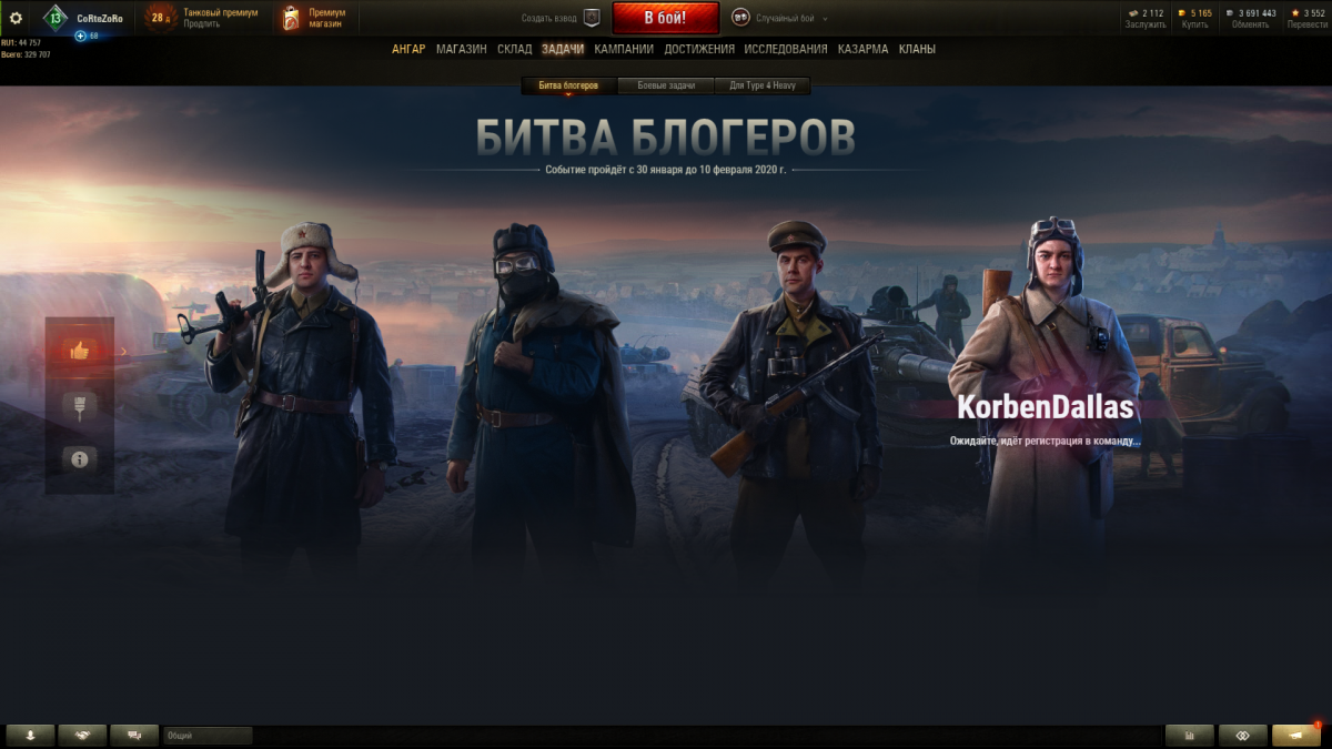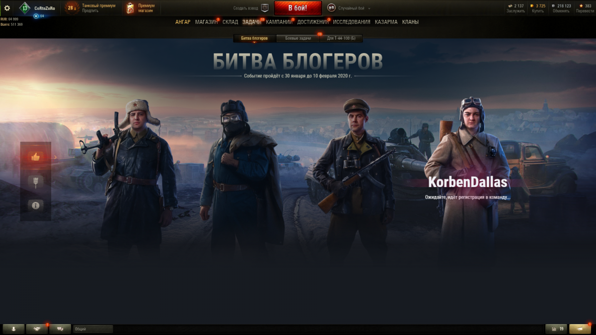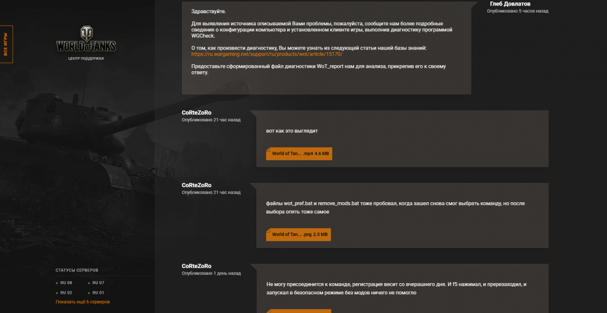 http://cdn-frm-eu.wargaming.net/4.5/style_images/wg/snapback.pngApkaxa_G (01 фев 2020 - 13:00) писал: Добрый день! Есть проблема с битвой блогеров. Уже 3 день висит: "Ожидайте, идет регистрация в команде..." Писал в ЦПП, выполнил все что насоветовали, потом снес игру и поставил чистый клиент. И вуаля, все то же самое. ВГ чек и скриншот проблемы: http://cdn-frm-eu.wargaming.net/wot/ru/uploads/monthly_02_2020/post-10652238-0-36939400-1580561939_thumb.jpg http://cdn-frm-eu.wargaming.net/4.5/style_extra/mime_types/script.gif WoT_report.wgc 588,83К PS: С Поддержкой еще не закончили общение, но скорость у них 1 сообщение в сутки. Привет брат) Уже третий день так же, в тех поддержке тоже на это ложили болт, мол дело в компе