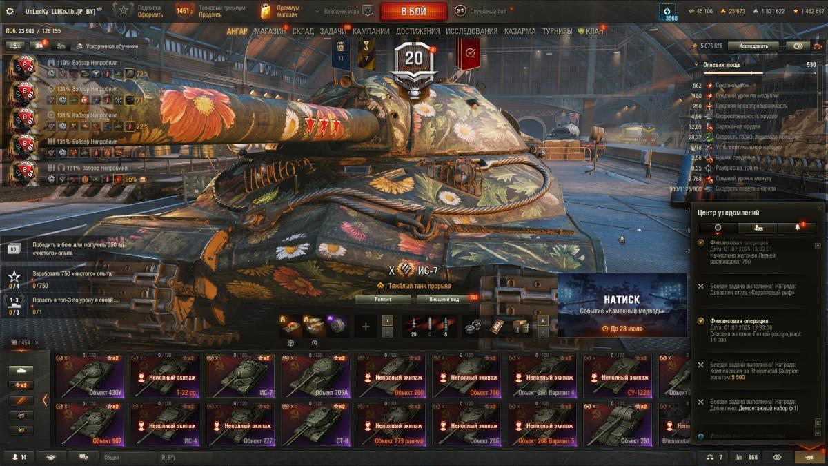 5. Если у меня есть танк, который выпал, какая будет компенсация? Набор "Случайная награда": • Czołg Pancernik wz.46: компенсация - 25 000 золота; • ИС-7 «Драгун»: компенсация - 25 000 золота;• Char Mle. 75: компенсация - 17 500 золота;• К-91-122: компенсация - 17 500 золота; • M-VII-Y: компенсация - 11 000 золота; Компенсация остальной техники в рамках данного набора - 11 000 золота. Почему компенсация на скорпа 5500?