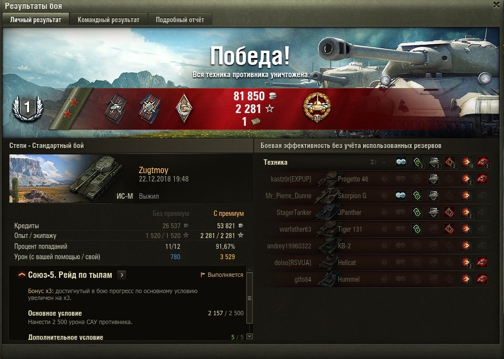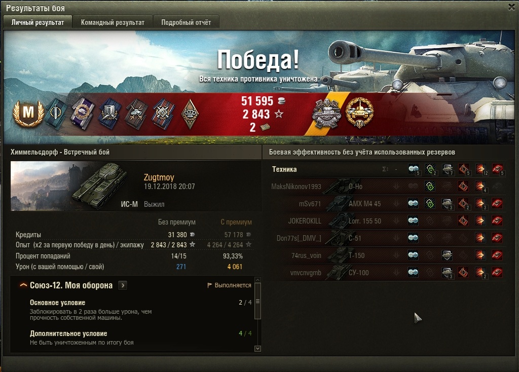 Прошёл эту машину за 142 боя, и в целом остался доволен, но был и негатив. Просто думается мне, что за мнимую ультимативную броню танк слишком многим расплачивается - косоватый ствол, неповоротливость, слепота... В принципе, если апнуть ИСу манёвренность, то будет уже вполне нормально. А то вымораживают всякие лягушатники, норовящие прорваться к моим филейным частям, а я не успеваю довернуть к ним лбом. Взял на нём мастера и 2 отметки на ствол, думаю запотеть на 3 отметки, но это уже потом, после праздников, сейчас же, пока есть рейты, буду катать 705. Ах да, катал с БК 2к1 ББ и фугасы, голду из принципа не вожу.