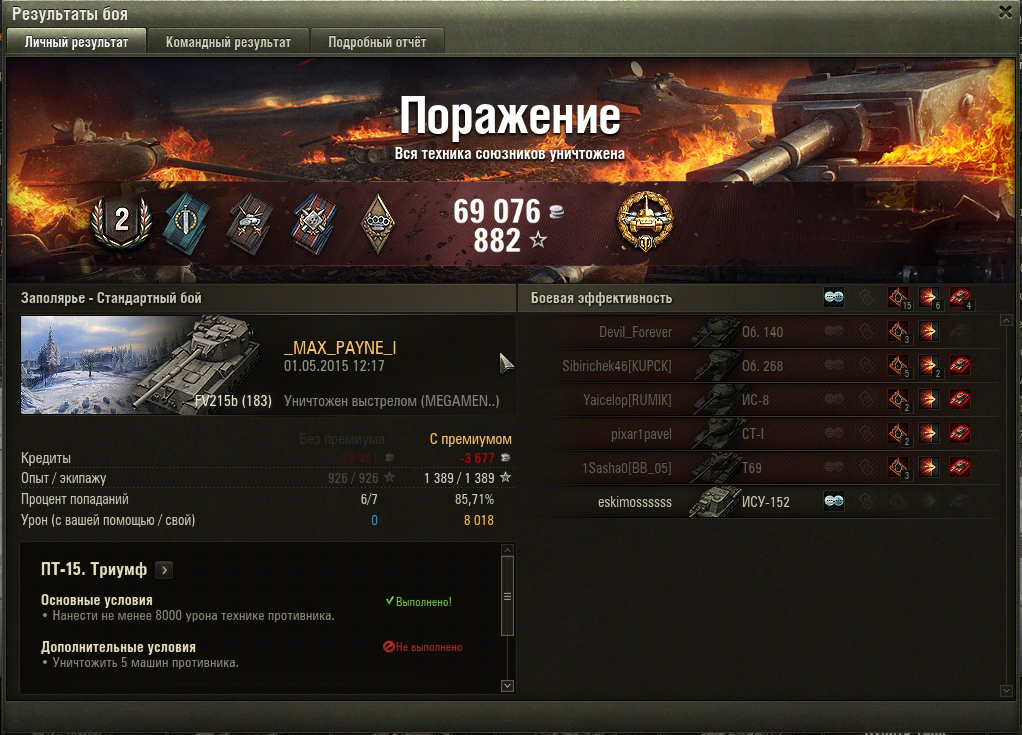 Фуууууууу ну наконец то ПТ 14 , кто то скажет что ерунда и сделали её в первом бою . Но как по мне задачка сложна и опять же рандомна так как в топ кидает ох как не часто а если и кинуло то не факт что твои союзники окажутся полными оленями!