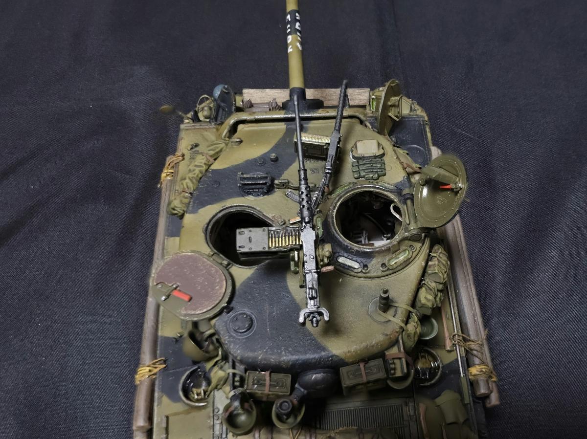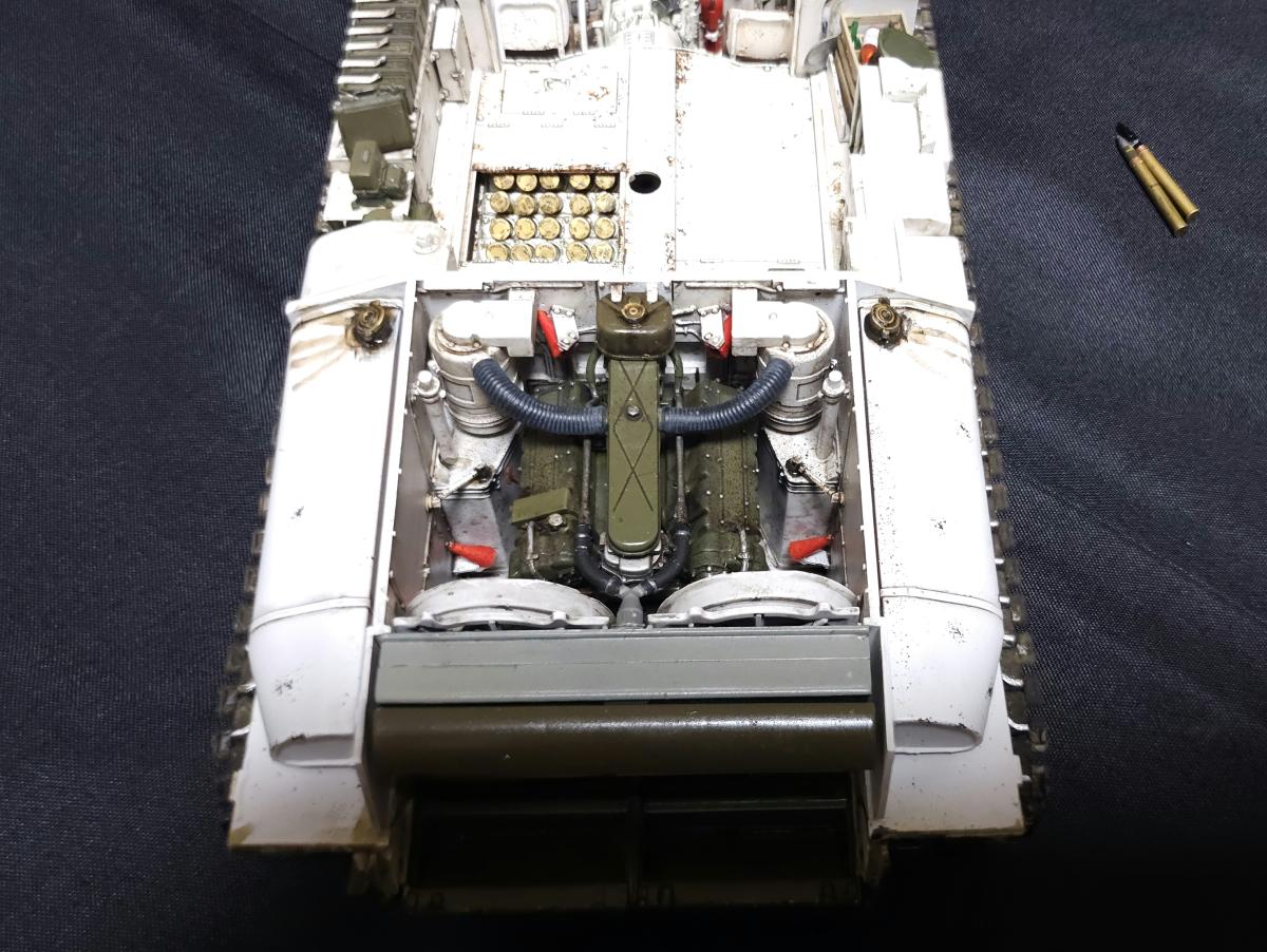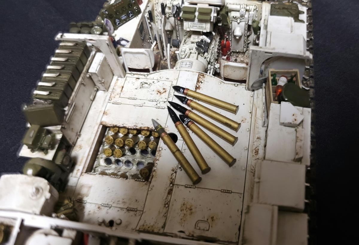 История, а точнее финал фильма создан по мотивам истории из мемуаров Белтона Купера "Смертельные ловушки", разве что в книге подобные события произошли в середине ноября 44, а в фильме в апреле 45. По соответствию прототипу из фильма: Обвес полноценно воспроизвести не удалось, но в целом довольно похоже, предположим что у меня Фьюри взят за пару недель до событий фильма Частично детали обвеса взяты из модельки Фьюри из картофельных танчиков, частично из нового Шермана от Border, из барахла, что шло в комплекте с Шерманом РФМ и ещё из всяких наборов с мелочевкой В фильме на танке установлены траки Т84, но фактически это траки от М46 Patton, и на машине в апреле 1945 устанавливаться никак не могли, поэтому на модели стоят T80, устанавливавшиеся с января 45 (ну а ещё они в коробке сразу идут) Внутри попытался отобразить все мелочи, которые бросились в глаза при просмотре фильма: - немецкую фуражку - немецкие медали - гранаты на верёвочке у командирского люка - бутылку ***, спрятанную рядом с радиостанцией, которую Дон достаёт перед боем на перекрёстке - М1А1 "Томпсон" Святоши - Штурмгевер Дона - фотографии Толстяка Декали бортовые номера и обозначения 66 танкового батальона 2 бронетанковой дивизии идут в наборе РФМ, и полностью соответствуют маркировке Фьюри в фильме, но при этом нет самой надписи на ствол. Почему - может быть какая-то фигня с авторскими правами (ага, китайцы и авторские права, конечно) Изначально были мысли докупить Фьюри от итальери, но откровенно говоря, там и обвес и декали ну очень кривые и с фильмом имеют ещё меньше общего, поэтому идея была отброшена и недостающие декали пришлось заказывать отдельно (спасибо Юрию Колокольникову, он мне из перерисовал с двух скриншотов из фильма, да и все остальные декали - его заслуга), вместе со всякими фоточками, которые засветились в фильме внутри танка Единственное - что во время фотографирования напрочь забыл про антенну, которая благополучно всю фотосессию пролежала на столе Но т.к. я очень ленивый, переснимать не хочу и просто поставил антенну на место после съёмки фото) По набору: в целом приятный, особых нареканий не припомню, разве что не совсем идеальная стыковка частей корпуса и башни между собой на сухую, для модели без интерьера не критично - все можно спокойно склеить, но вот для разборной интерьерки неприятно Ну и всё же хотелось бы видеть полноценные пружины в подвеске, как на Шермане с VVSS подвеской от тех же РФМ или Менга Касаемо снарядов возникли вопросы: 1. Почему даны 4 подкалиберных снаряда и только 2 фугасных? Почему бы не заменить пару довольно редких в реальности подкалиберных на фугасные, одни из основных снарядов? 2. Вопросы к набору декалей для боекомплекта. Во первых в набор входит 4 снаряда M62, но на них всего 3 декали на сам снаряд, на подкалиберный M93 аналогично. Почему так? При постройке использовались краски и химия от Ганзы, Тамии и Джима, Микроскейл, АК, Аммо, оилбрашеры 128
