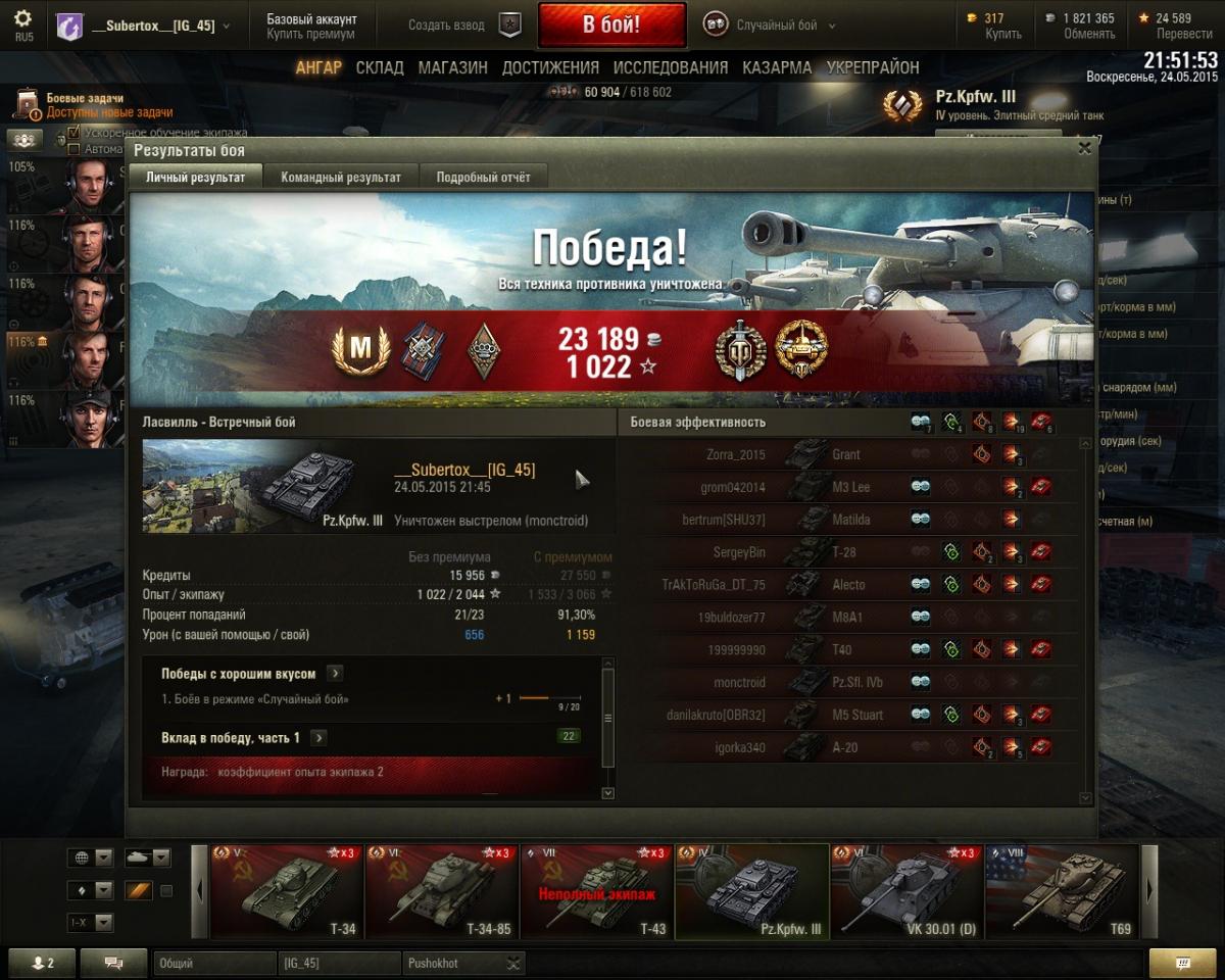 Танчик очень хорош, быстр и точен с хорошим пробитием экипаж ушел на Лео ПТ А Вот думаю на каком бы танке воспитать для пылящейся в ангаре машины новый экипаж... с модулями экспериминтировал, перепробовал несколько комбинаций в итоге остановился на: -стаб; -досыл; -сведение; при установке вентиляции вместо приводов практическая скорострельность снижается, а при установке так жизненно важной оптики так же сильно снижается эффективная скорострельность ставить оптику, вентиль и стаб одновременно не пробовал