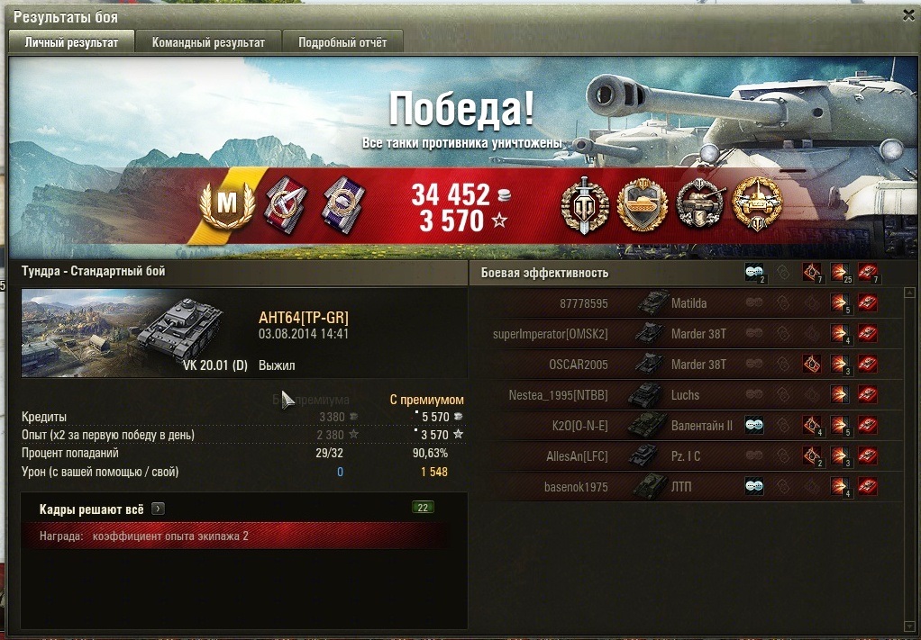 норм танчик, тормоз немного...купил, думал в противниках балансить таким же будет (последний неубитый), но видно в рандоме их совсем мало :(