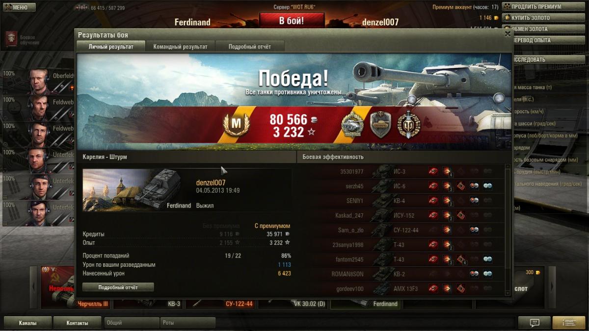 Да адно вам, я тоже не хочу ничего доказать) Просто под впечатлением и под влиянием лёгкой эйфории от боя скинул этот скрин сюда) Долго мучался, когда выбирал между Федей и ЯгП2. И уверен, они обе шикарны. Сам катаю на СУ-122-44, и, на мой взгляд, она по хар-кам и ездовым качествам почти зеркальное отражение ЯгП2, так фана доставляет нереально много! И стата у меня на СУ очень даже приличная, по крайней мере, по сравнению с моей статой на других танках) Всем удачных боёв! P.S. Давайте закончим этот спор. Тот, кто остался под впечатлением от ЯгП первой - берёт ЯгП2, а тот, кто хочет понять, что ждёт его на хай лвлах этой ветки - берет Федю.