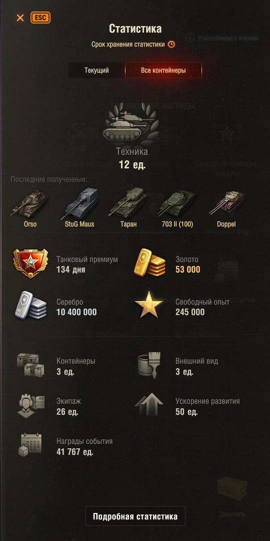 Глубоко любимая картошечка, лесточка, раз в год ты по настоящему умеешь удивлять! П.С. 184 коробки по предзаказу (из танков в ангаре не было ни одного). +3 легендарных контейнера. П.П.С. Всем удачного лототрона!