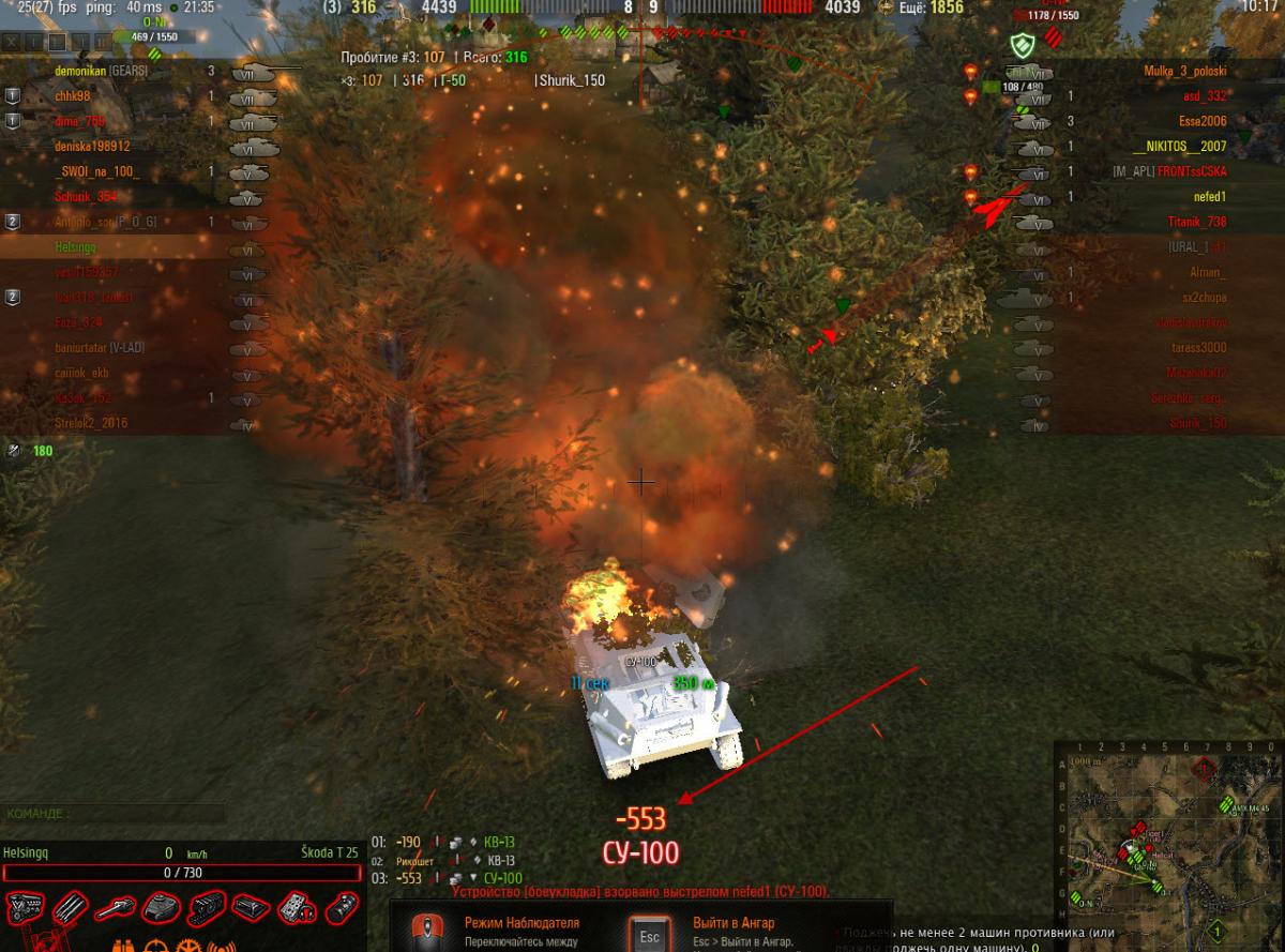 Вроде не считаю себя глупым игроком, знаю, что дамаг с выстрела рассчитывается по формуле - показатель разового урона +-25%. У Су-100 у топовой пушки он равняется 390, т.е. максимальный равен - 390+25%=487,5. Тогда не могу одного понять, каким образом получилось сушке выбить 553 урона (скрин во вложении). Если нужно, могу рейплей выложить. Или что-то в этой жизни поменялось? И теперь дамаг по другим формулам считается?