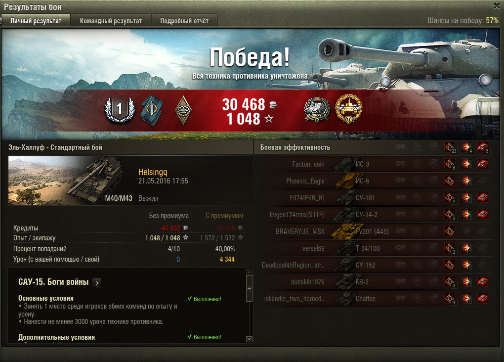 Пару постов выше мой посмотри - 15 задачу сделал без напряга будучи в топе. Началось все с ваншота ис-3 и далее по накатанной)