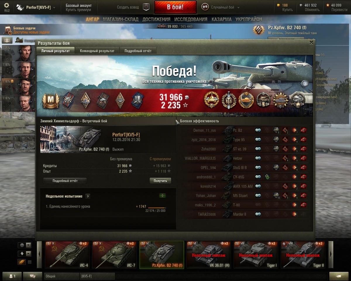 Имба! Имба! Имба! Имба! да задрали вы уже с этим. танк специфический, гнет ТОЛЬКО в прямых руках. Разрывает любые танки (кроме ПТ) 3 лвл. И при этом 100% смерть и ангар при встрече с адекватным водителем практически любого танка 4 лвл. Смертельна встреча с односкиловыми ПТ 3 и тем более 4 лвл. Смертельны встреча с т28 и особо т28 ф30, матильдой, хетцером, т40, мардером 38т даже в руках рукож....в. Б2 фантастически боится фугасов, практически всегда ваншотится при прямом попадании арты. Именно ваншотится, а не просто урон и криты, попадание арты всегда проходят с пробитием. лично для меня, встреча с б2, это не нечто неординарное, ведущее к ангару, надо просто знать куда стрелять! У В2 фантастическое кол-во дырок по всему корпусу, отправить его в ангар, если он не может реализовать свой дпс очень легко. Но если знать как играть + вагон везения + тупизна противников, можно сыграть вот так: http://cdn-frm-eu.wargaming.net/wot/ru/uploads/monthly_05_2016/post-1838007-0-91731600-1463132737_thumb.jpghttp://cdn-frm-eu.wargaming.net/wot/ru/uploads/monthly_05_2016/post-1838007-0-95847300-1463132747_thumb.jpghttp://cdn-frm-eu.wargaming.net/wot/ru/uploads/monthly_05_2016/post-1838007-0-70641000-1463132761_thumb.jpg а можно и кумулятив от хетцера схватить в начале боя и уйти в ангар с 0.