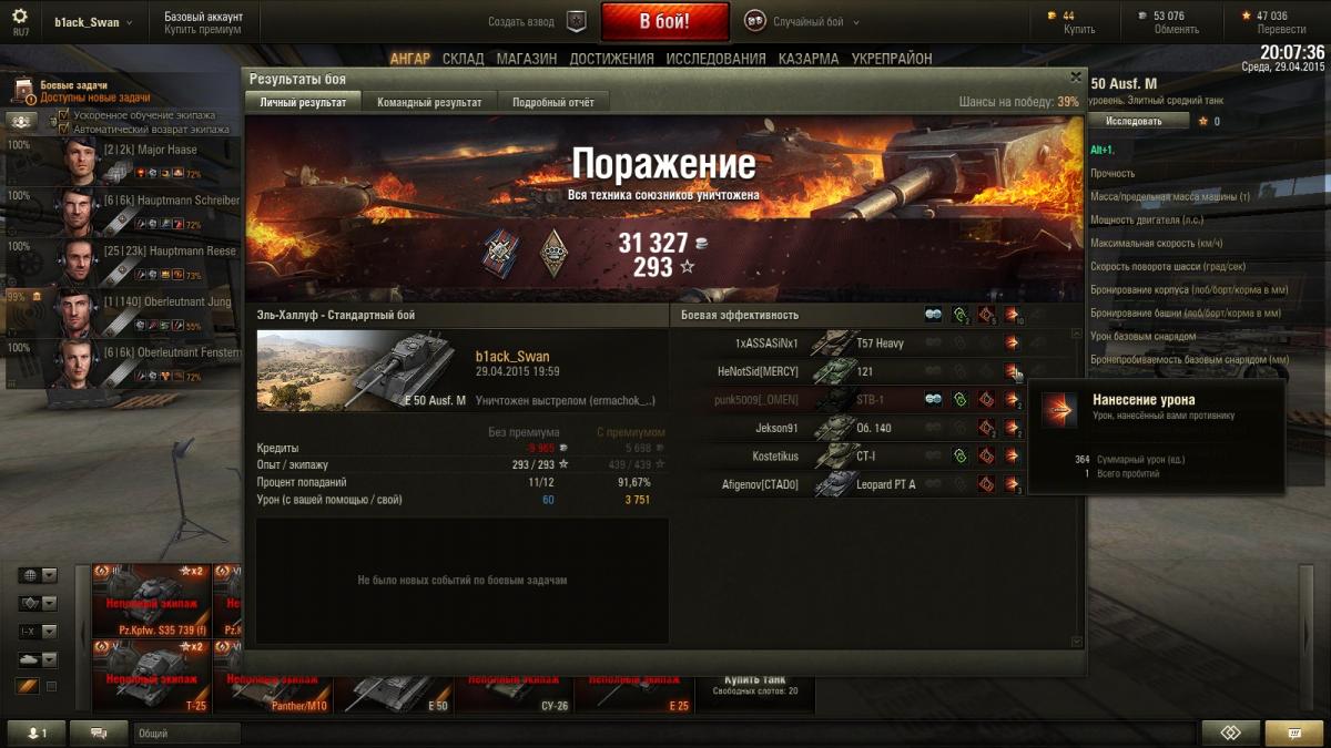 пришел после патча побугуртить в игру, повода ждать долго не пришлось - альфа на немцах лео и е50 легендарно низкая. Вчера выбивал по несколько раз подряд ~290, вот скрин сегодняшней катки, затащить там было нереально и все же... концентрация альфы зашкаливает