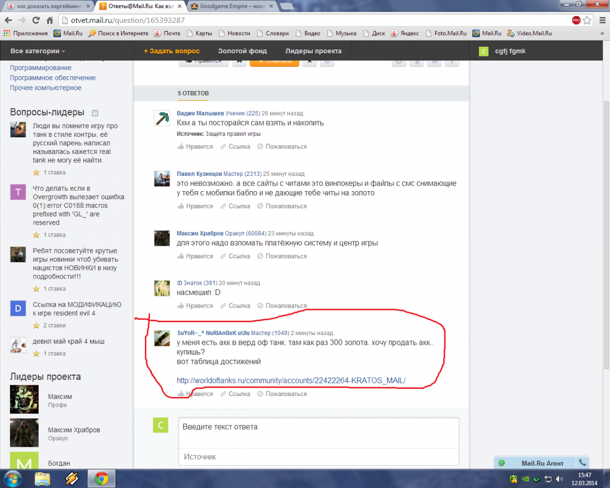 В общем у меня сложилась неприятная ситуация, в которой я оказался из за мошенников. Мой аккаунт под ником 68kobolok был взломан мошенниками, но суть не в этом. Когда я написал в службу поддержки игры World of Tanks то мне вместо помощи пришло уведомление в виде: Ваш аккаунт был забанен навсегда и там были статьи за которые мне дали перманент. Вобщем подозревают что это была купля/продажа, на самом деле это не так! Вобщем помогите мне умные люди, посоветуйте кто что может! Мне смысла даже не было продавать такой отличный аккаунт! Помогите мне его вернуть!Вместо компетентных ответов я получал уведомление в виде - спасибо за ваше обращение, но ваш аккаунт забанен навсегда и пересмотру не подлежит! Помогите!! Есть чеки, реплеи, друзья в конце концов.Люди помогите вернуть аккаунт!дали перманент невиновному!