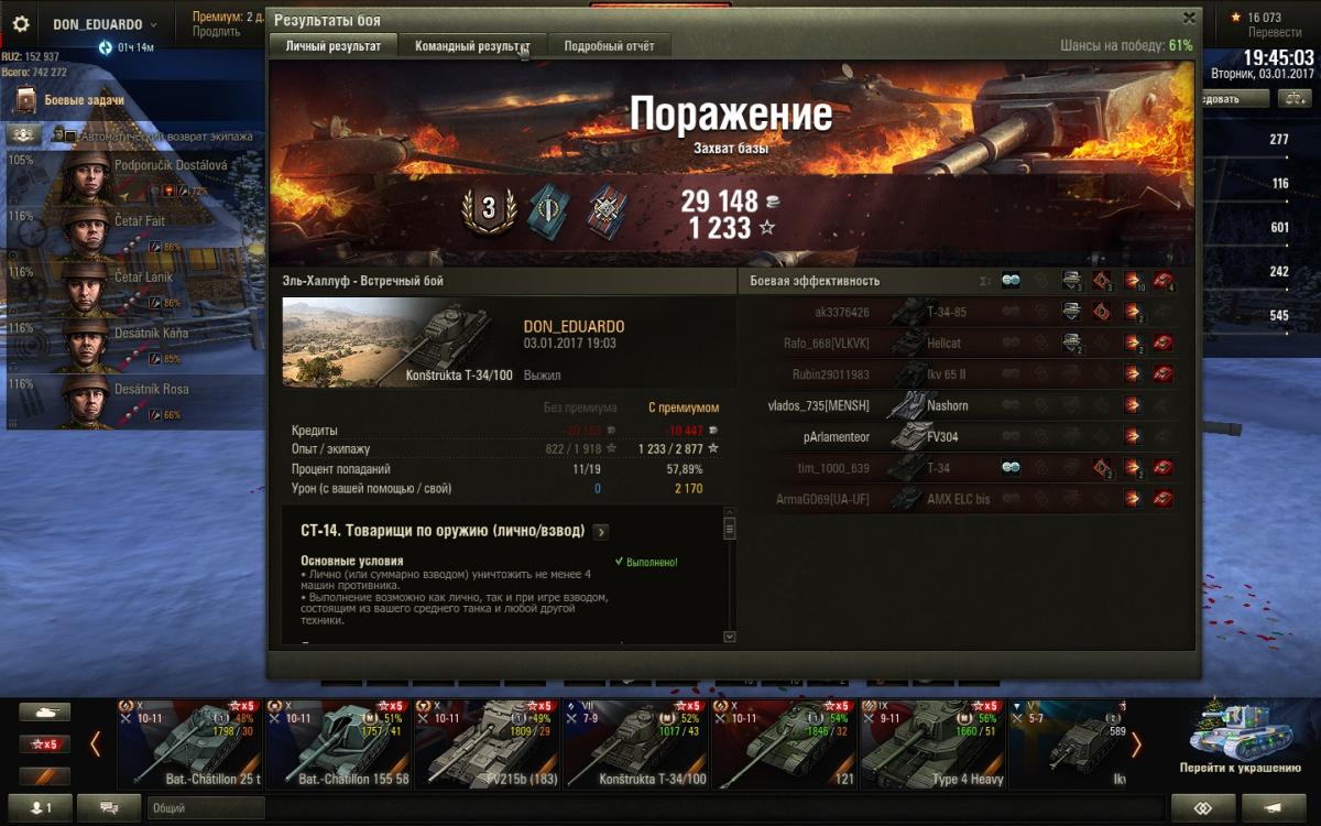 Здравствуйте, вопрос такой : уже не раз сталкиваюсь с такой ситуацией -- противник захватывает базу одним танком, остаются последние секунды и в тот в момент когда появляется на экране надпись "База захвачена" я стреляю в захватчика и наношу урон. В итоге мы проигрываем захватом базы. Но самое интересное, почему тогда мне засчитывают урон нанесенный этому "захватчику" ? Либо урон не считать, так как игра остановлена победой противника путем захвата базы или считать сбитие захвата раз я нанес урон захватчику и его засчитали. Логика где??? Игрок pArlamenteor стоял на захвате и как видно он получил от меня урон. http://cdn-frm-eu.wargaming.net/wot/ru/uploads/monthly_01_2017/post-1845489-0-14461400-1483454776_thumb.jpghttp://cdn-frm-eu.wargaming.net/wot/ru/uploads/monthly_01_2017/post-1845489-0-74009500-1483454790_thumb.jpg http://wotreplays.ru/site/9443410#el_-halluf-don_eduardo-kon_trukta_t-34_100
