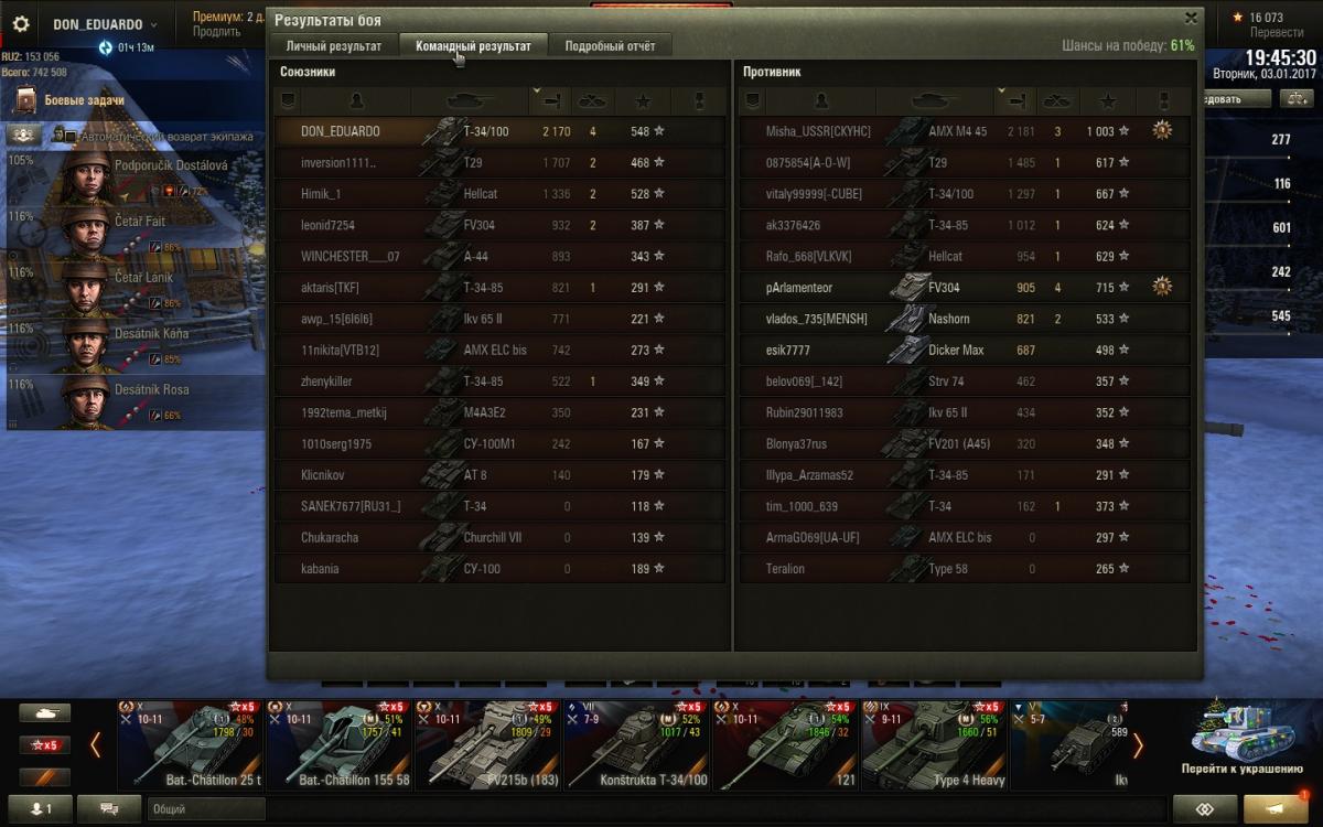 Забыл еще один пункт 16....как назвать? не знаю, наверно тупо--УДАЧА или ВБР ВАМ В ПОМОЩЬ!!! Иначе как назвать то , что сегодня да и не только сегодня 10 боев в подряд на одном и том же танке 10 ур. на разных серверах и все слив????? При этом Я по домагу не ниже середины. В Команду разную кидает и красные и стадо зеленых с фиолетовыми, все равно слив при чем счет дикий 5-15, 6-15, 3-15 ну и так далее....Я вот и не пойму как так получается, у тебя в команде стадо зеленых-фиолетовых а ВСЕ РАВНО СЛИВ!!!!!!!!!!!! по теории случайности Я уже должен был выйграть.....но пункт 16 не подвластен игроку....