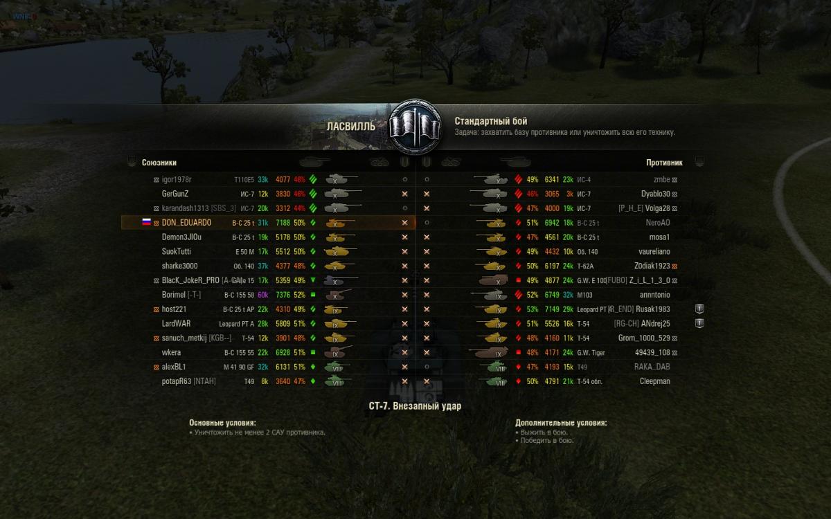 http://cdn-frm-eu.wargaming.net/4.5/style_images/wg/snapback.pngDON_EDUARDO (14 окт 2018 - 02:04) писал: УРААААА....Я СНЯЛ ЗВЕЗДУ....ЦА в 12 БОЕ...БалансиР Е.....ЫЙ Продолжение : Сегодня с 11 боя снял звезду.....а забыл сказать- -звезду получается снять когда у нас преимущество в "зелено-синих", а не наоборот....а чтобы равное количество игроков по мастерству я такого еще не видел !!!!-