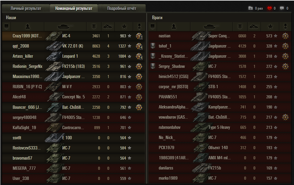 9. Никогда ни 1 игрок выше среднего не попросит убирать из игры красных раков, ибо они на них и кормятся. Да и плевать статисту на победу, они играют на урон.